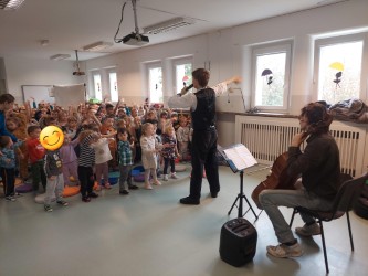 Druga w tym roku szkolnym audycja muzyczna pt. ,,Jesienna bajka z wiolonczelą". Tematem przewodnim spotkania była wiolonczela - dzieci poznawały ten instrument, dowiedziały się, jak wygląda, ile ma strun i do czego służy smyczek. Wydarzenie zostało opłacone z funduszy Rady Rodziców. Dziękujemy!