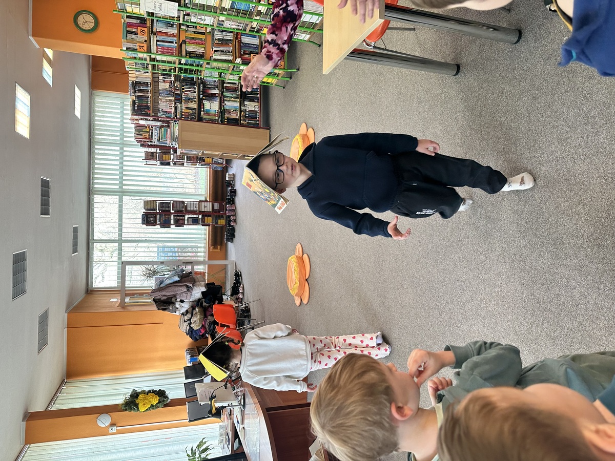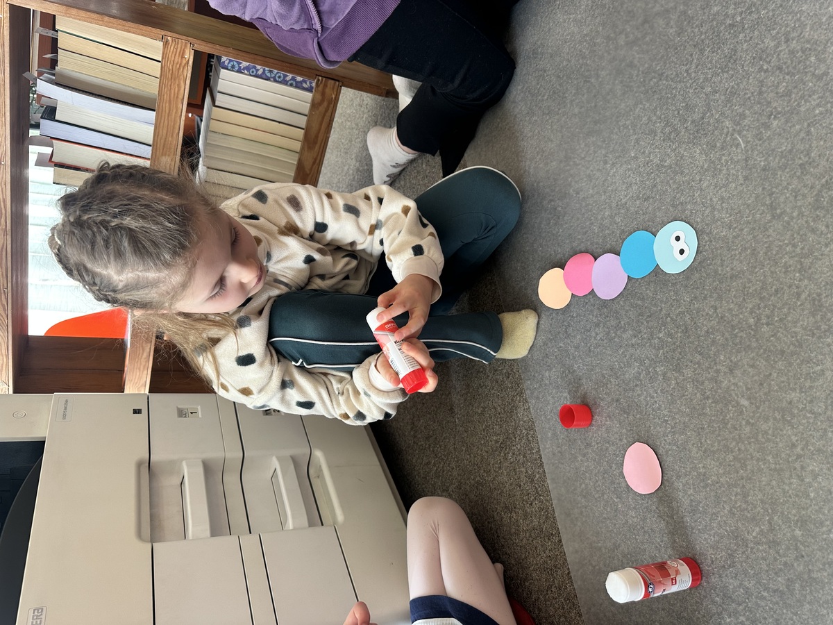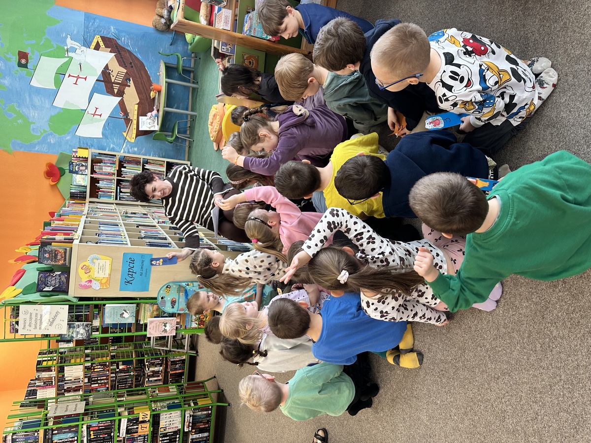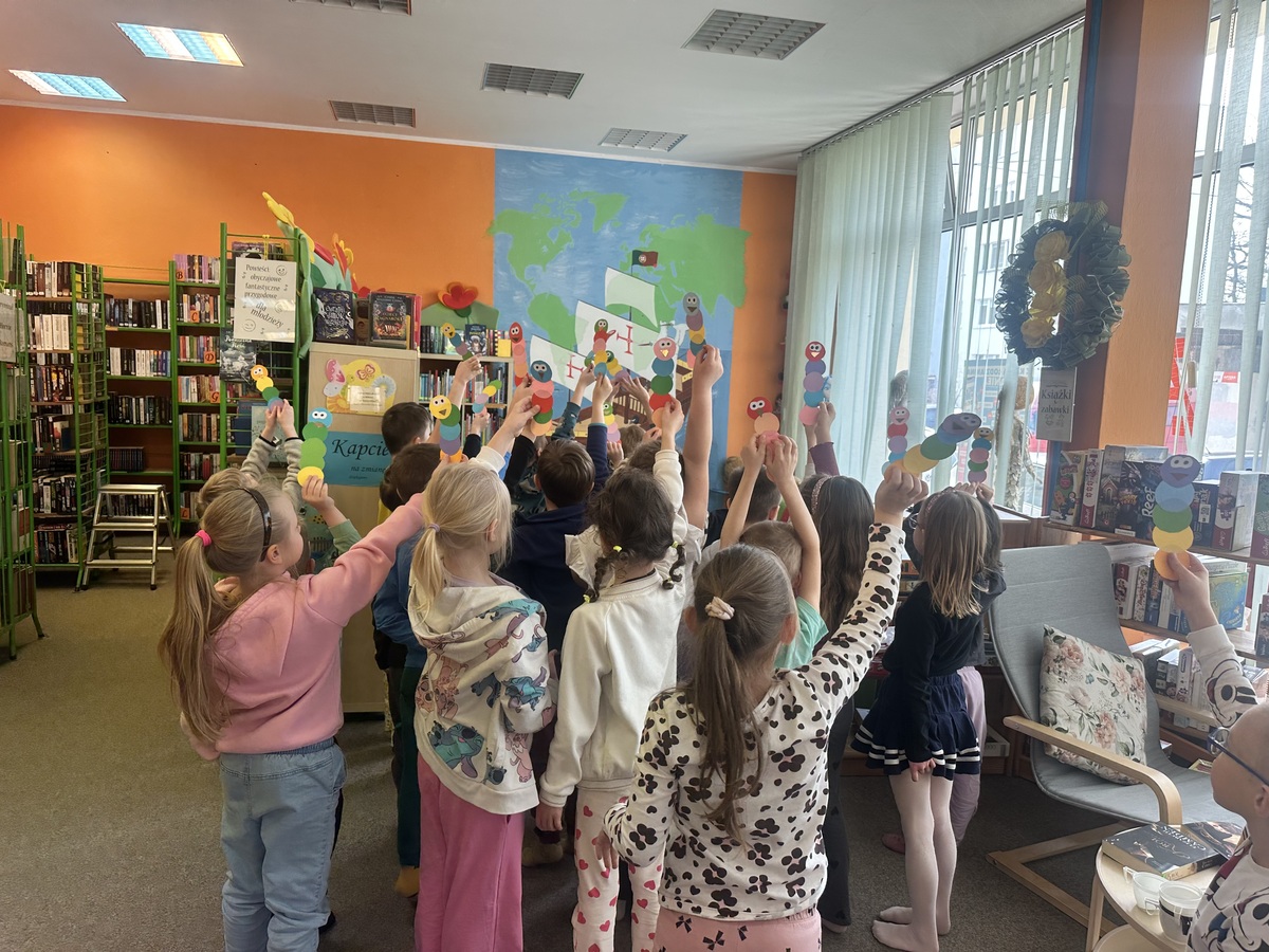 W dniu 27.02 grupa 4 udała się z kolejną wizytą do biblioteki przy Wilczej. Tym razem dzieci rozmawiały o książkach: jak powstają książki i jak o nie dbać. Przedszkolaki wysłuchały bajki o zmęczonej książce. Było też trochę ruchu. Podczas zabaw ruchowych dzieci odszukiwały ukryte w bibliotece zakładki. Na koniec same wykonały zakładkę do książki w postaci stonogi. To był fascynujący czas.