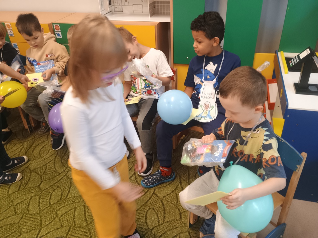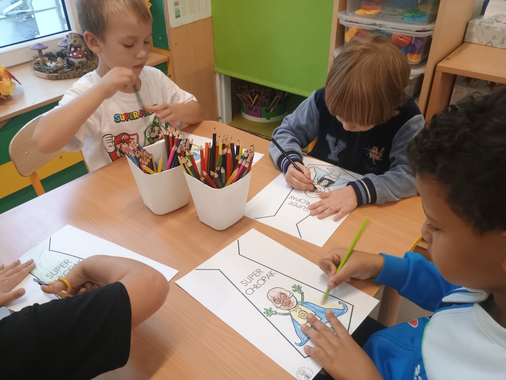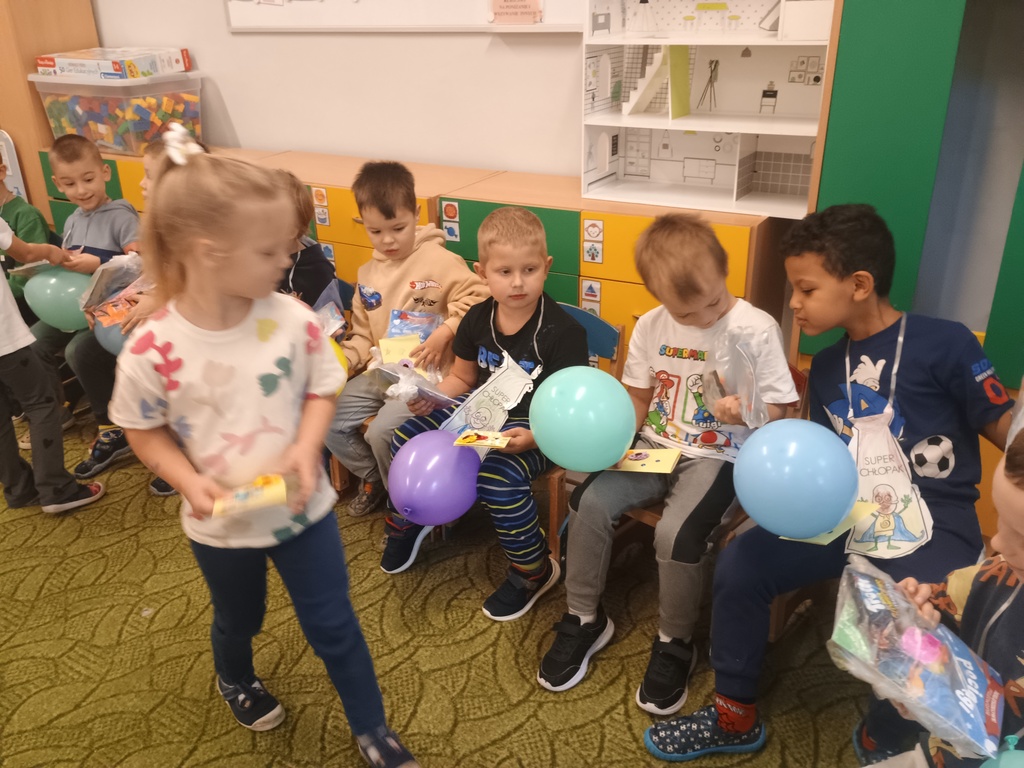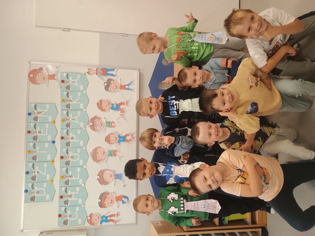 30 września to dzień na który z niecierpliwością czekali wszyscy chłopcy w naszej grupie - Dzień Chłopaka. Nie ma się czemu dziwić, gdyż na chłopców czekało mnóstwo niespodzianek. Podczas, gdy oni wykonywali gustowne krawaty z papieru, dziewczynki w tajemnicy przygotowywały laurki i dyplomy. Następnie dziewczynki wręczyły naszym małym bohaterom upominki, składając przy tym najlepsze życzenia. Doskonale bawiliśmy się przy muzyce, z balonami; w parach i grupowo. Dzień zakończył słodki poczęstunek, który wprawił nas w doskonale humory. To był bardzo radosny dzień.