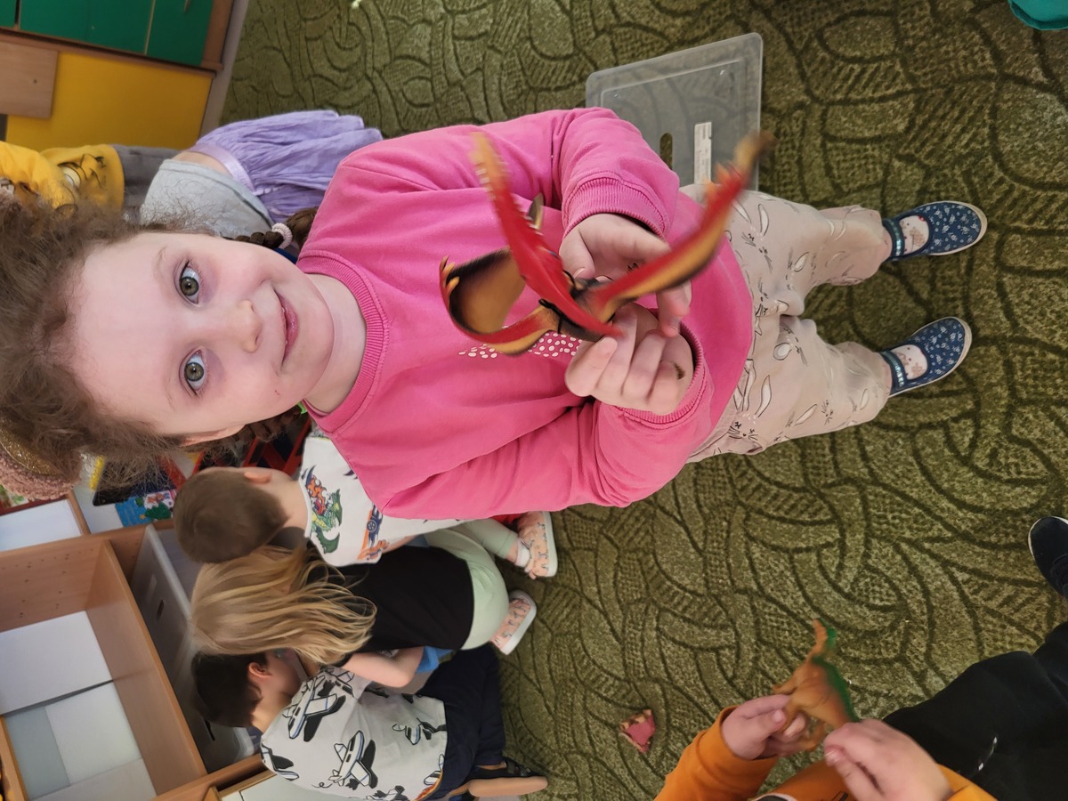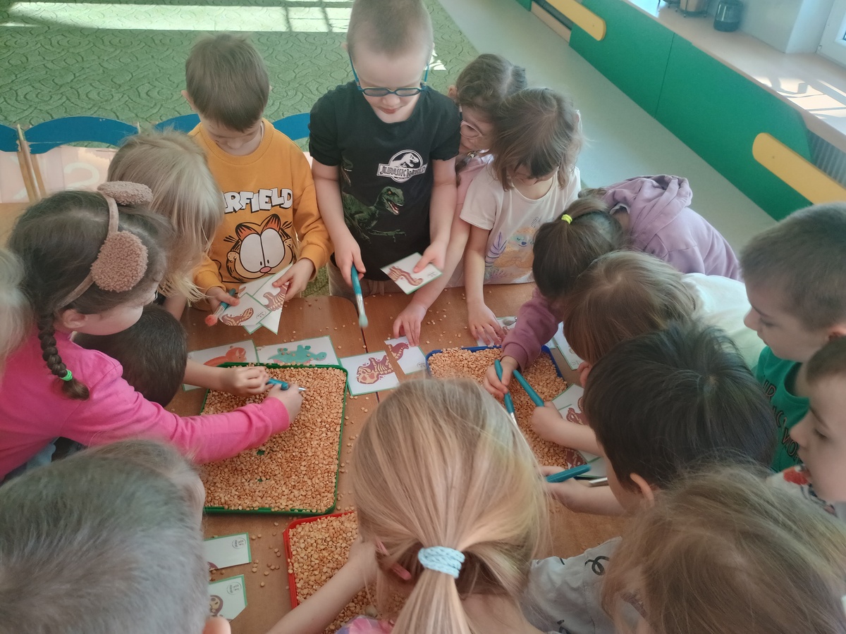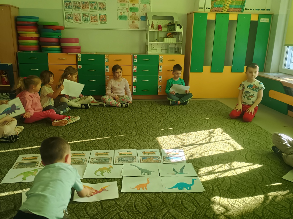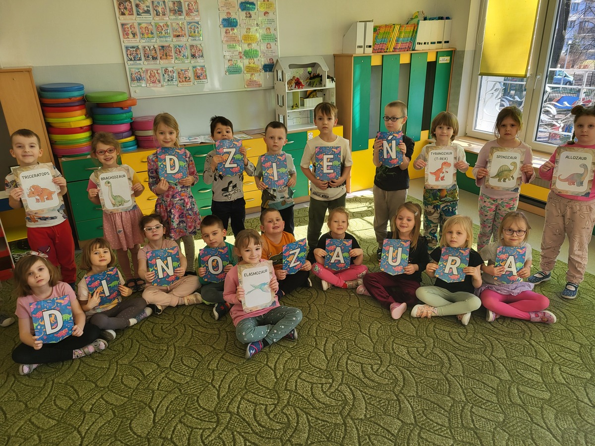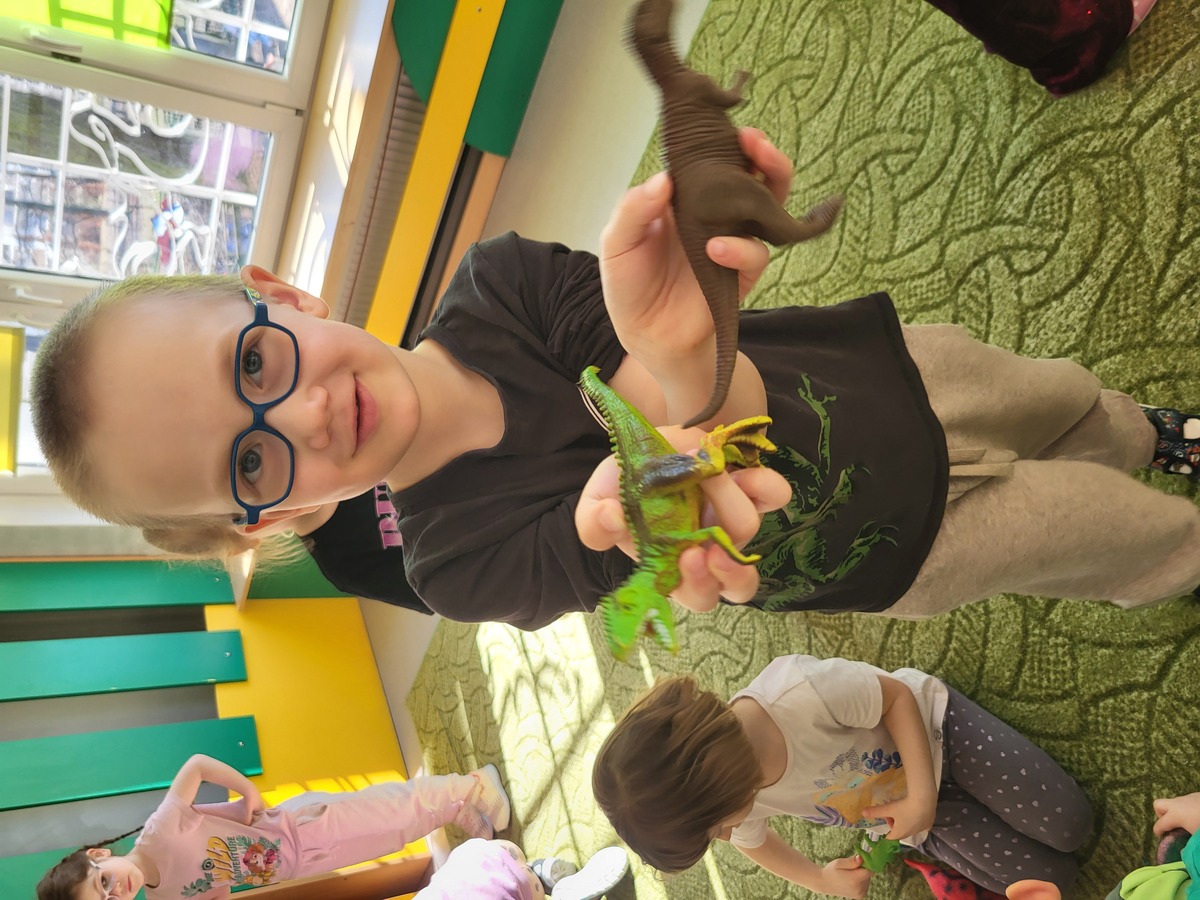 26 lutego obchodziliśmy w naszej grupie Dzień Dinozaura. Z zaciekawieniem obejrzeliśmy film, odpowiadający na pytanie: " Dlaczego dinozaury wyginęły?", poznawaliśmy rodzaje dinozaurów oraz sposoby ich odżywiania. Odkrywaliśmy niezwykłe fakty na temat tych zwierząt słuchając ciekawostek, przeglądając książki i albumy. Wcieliliśmy się w zawód paleontologa, odkrywając szkielety pradawnych stworów. Na zakończenie doskonale bawiliśmy się z wykorzystaniem dinozaurowych figurek, tworząc sceny z pradawnych czasów. To był wyjątkowy dzień.