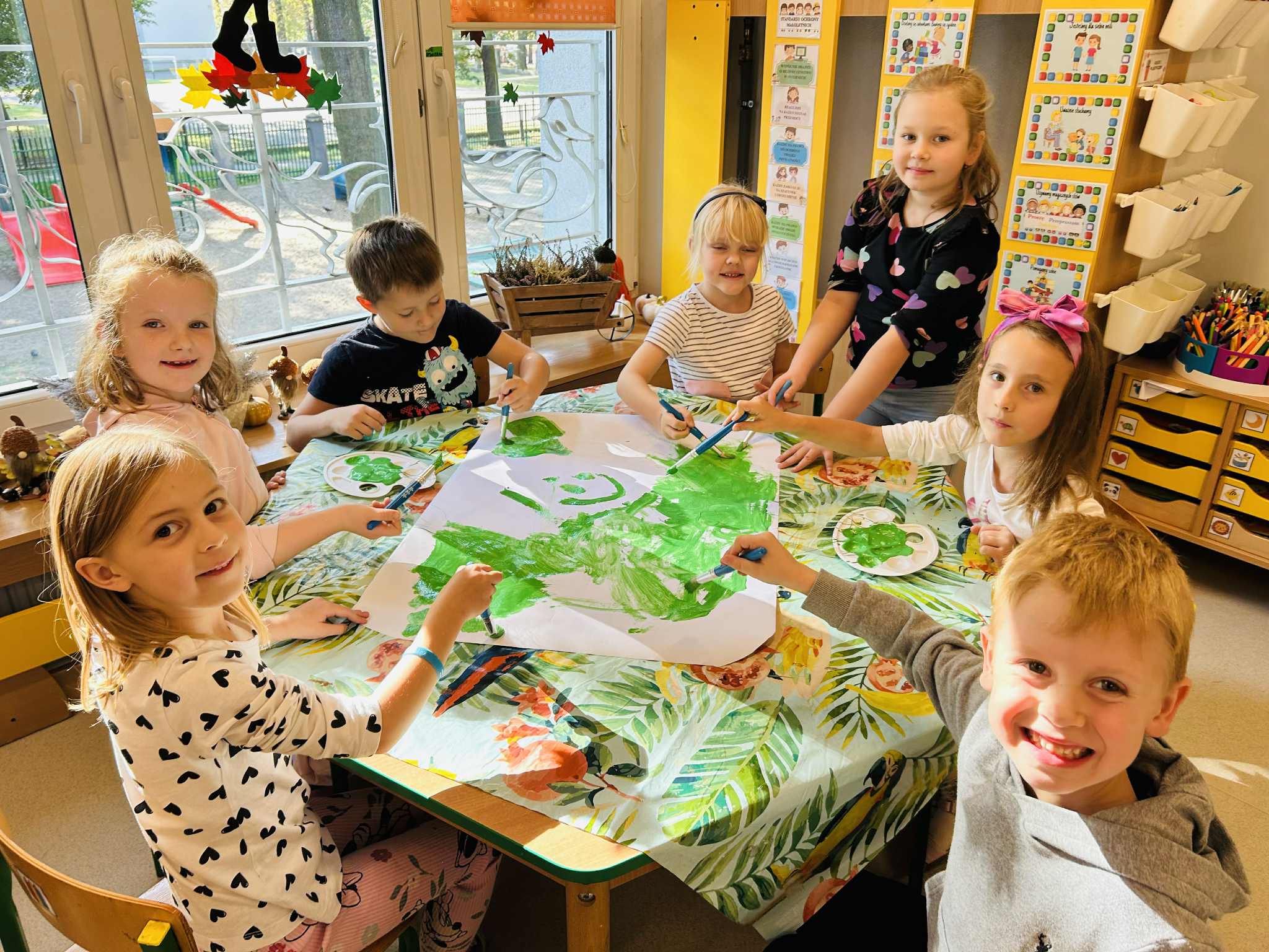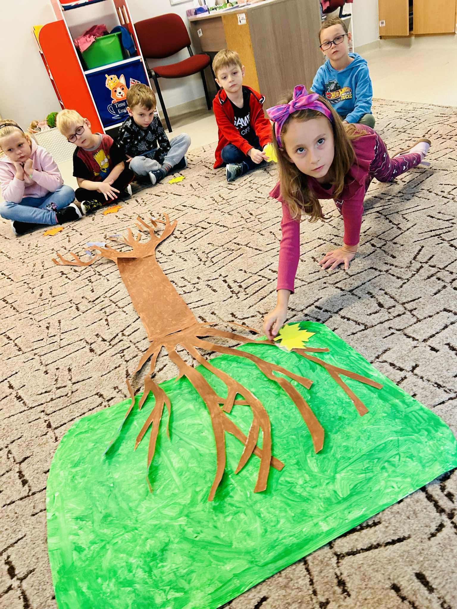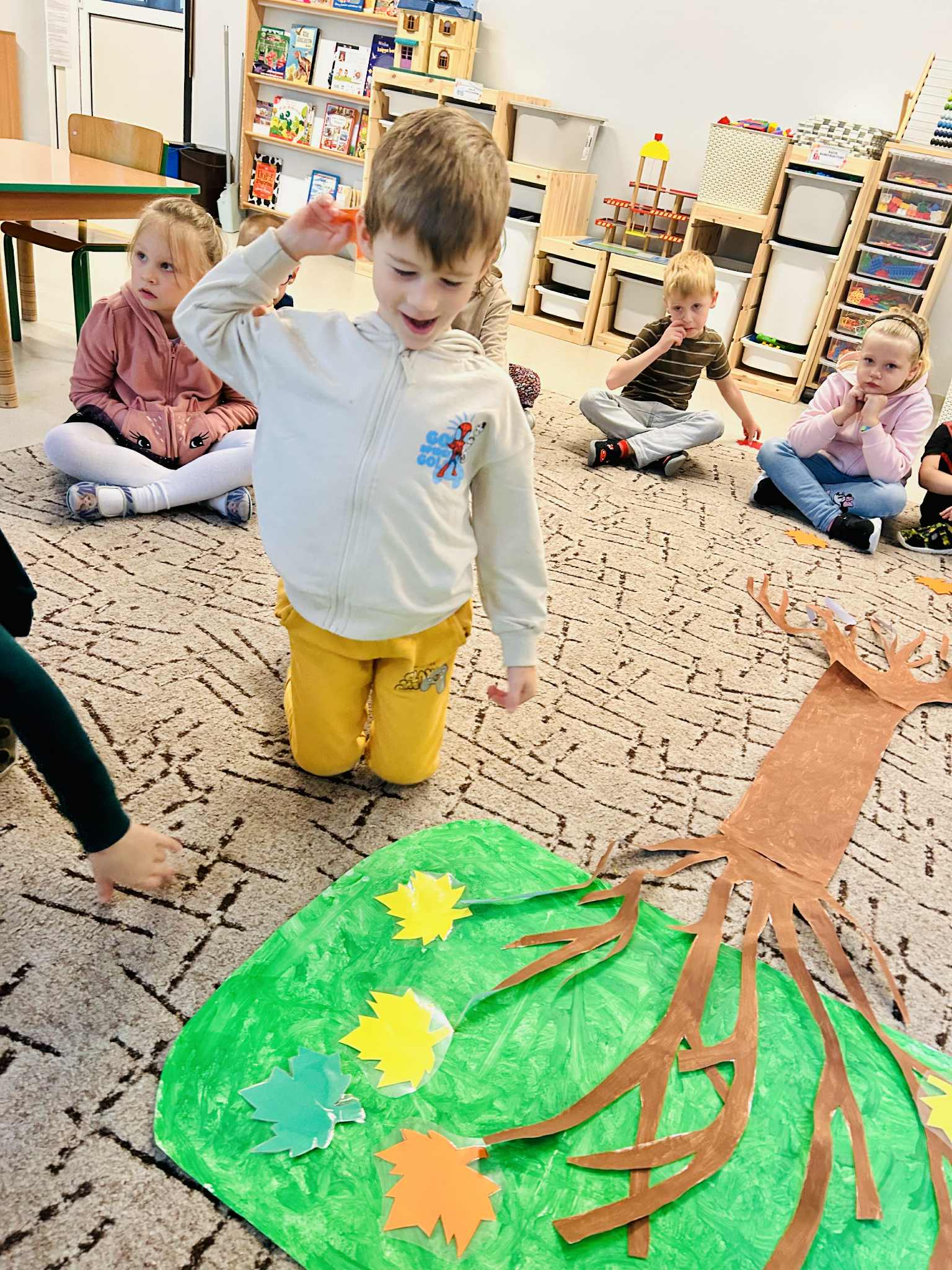 Z okazji Dnia Drzewa dzieci wzięły udział w zajęciach przyrodniczo-edukacyjnych, które miały na celu uwrażliwienie dzieci na piękno natury oraz uświadomienie im, jak ważną rolę w życiu człowieka i zwierząt odgrywają drzewa. Podczas zajęć dzieci aktywnie uczestniczyły w rozmowie kierowanej, tworzyły model drzewa, rozpoznawały liście i owoce, a także z dużym zaangażowaniem wzięły udział w grach i zabawach ruchowych. Dzieci ćwiczyły współpracę, logiczne myślenie oraz rozwijały swoje zainteresowanie przyrodą. Nie zabrakło również aktywności praktycznej — dzieci wspólnie zasadziły drzewko, które stało się symbolicznym znakiem troski o naszą planetę. Obiecały je pielęgnować i obserwować, jak rośnie.