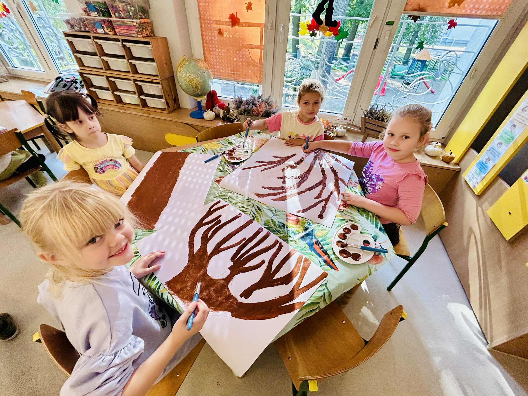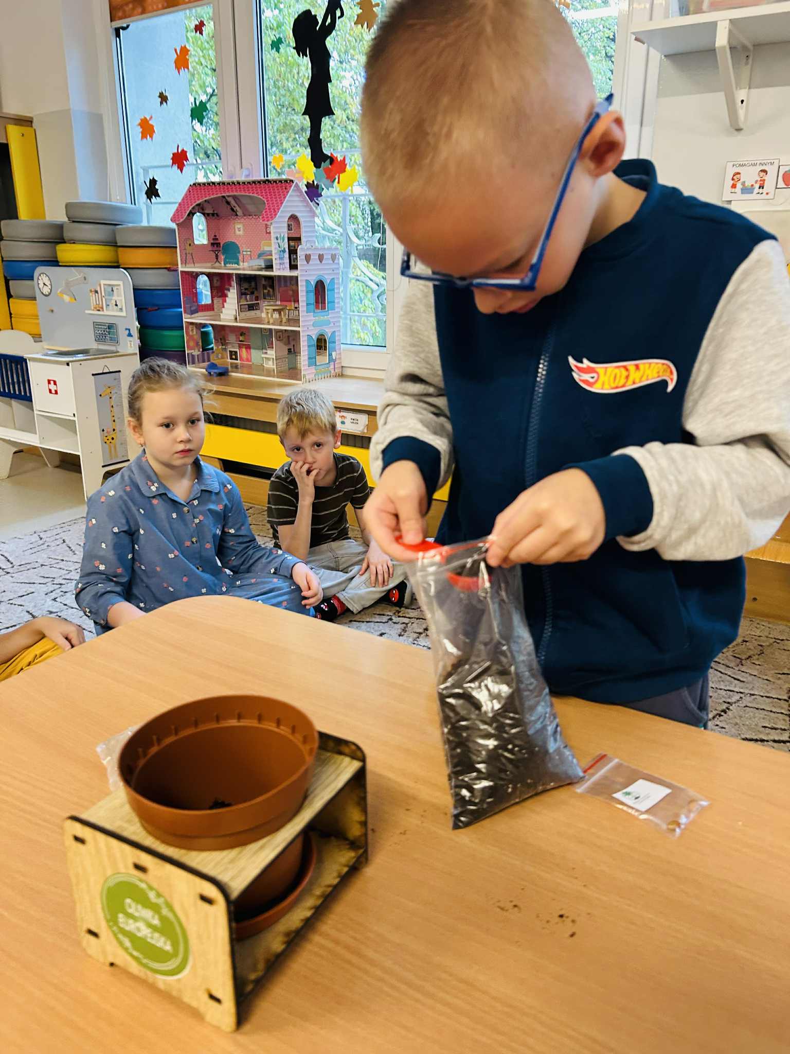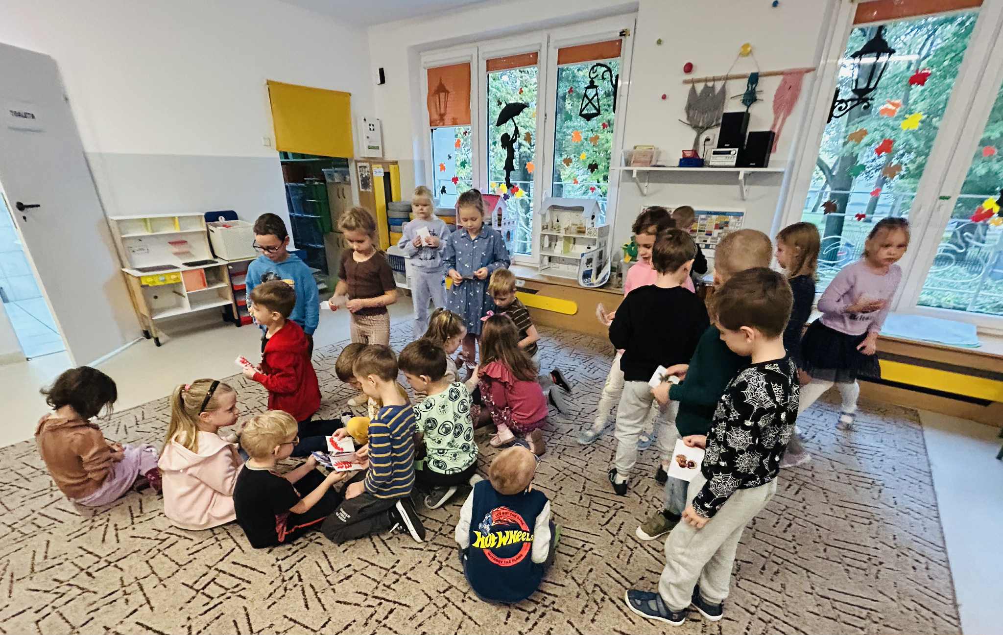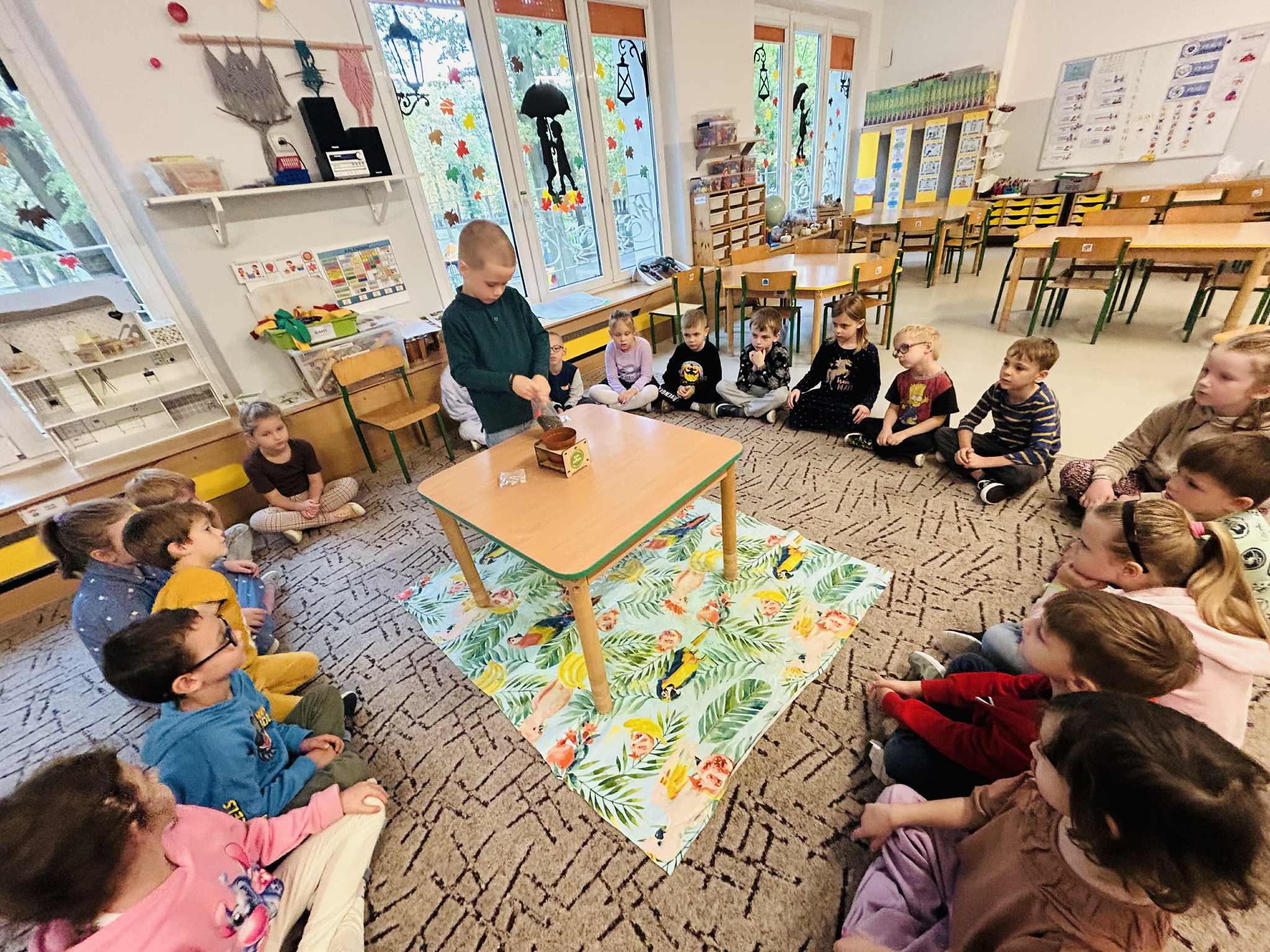 Z okazji Dnia Drzewa dzieci wzięły udział w zajęciach przyrodniczo-edukacyjnych, które miały na celu uwrażliwienie dzieci na piękno natury oraz uświadomienie im, jak ważną rolę w życiu człowieka i zwierząt odgrywają drzewa. Podczas zajęć dzieci aktywnie uczestniczyły w rozmowie kierowanej, tworzyły model drzewa, rozpoznawały liście i owoce, a także z dużym zaangażowaniem wzięły udział w grach i zabawach ruchowych. Dzieci ćwiczyły współpracę, logiczne myślenie oraz rozwijały swoje zainteresowanie przyrodą. Nie zabrakło również aktywności praktycznej — dzieci wspólnie zasadziły drzewko, które stało się symbolicznym znakiem troski o naszą planetę. Obiecały je pielęgnować i obserwować, jak rośnie.