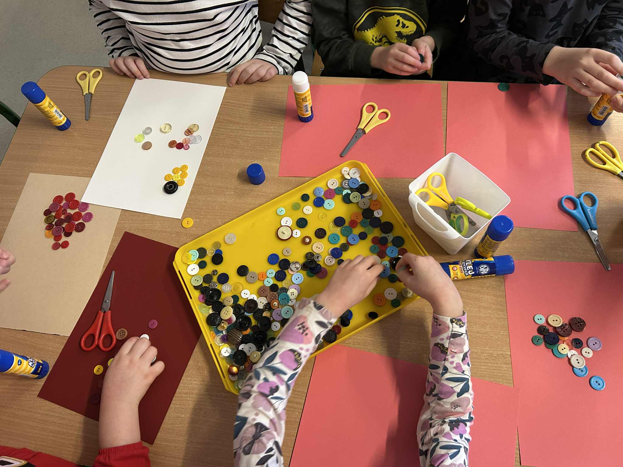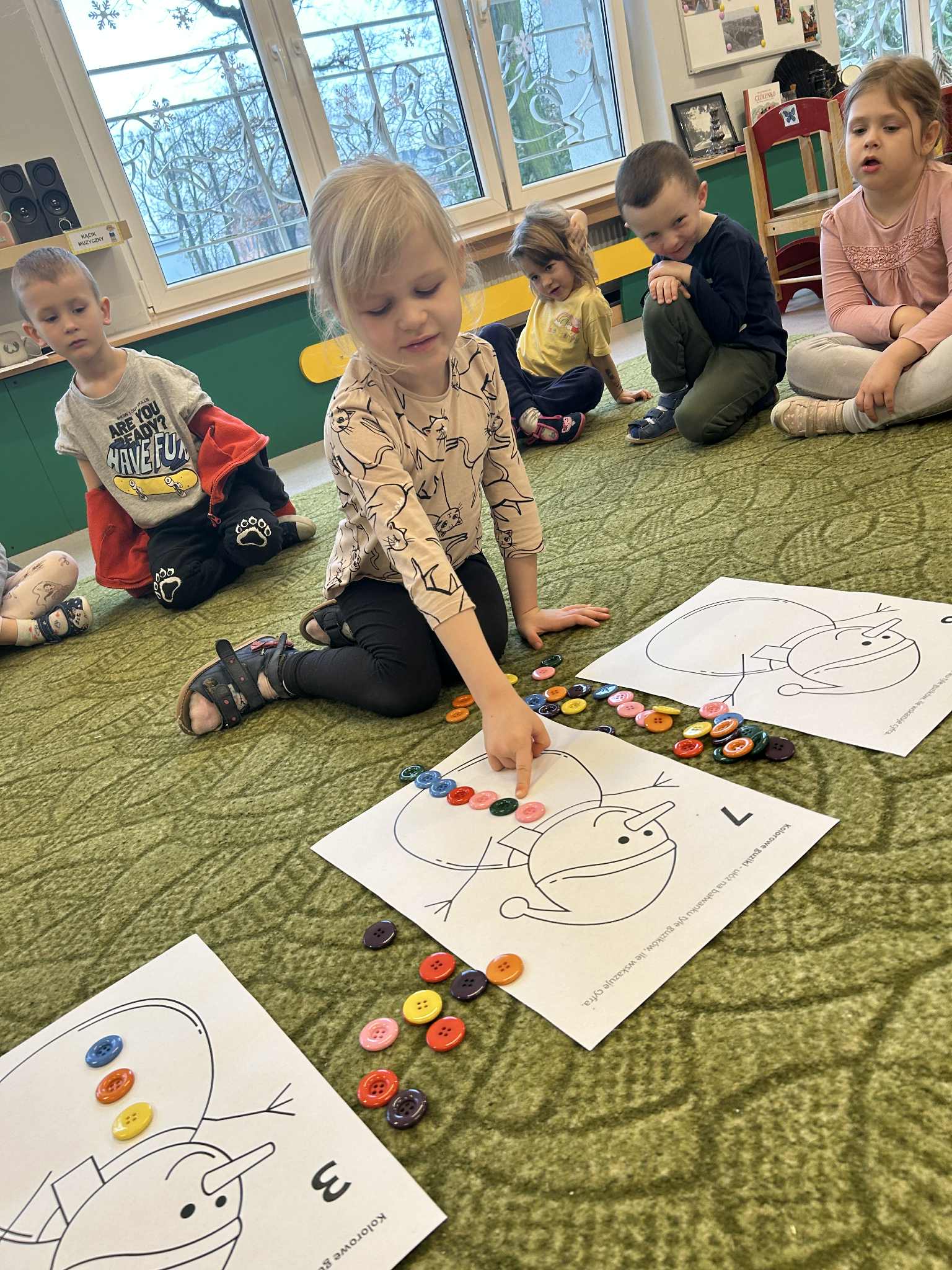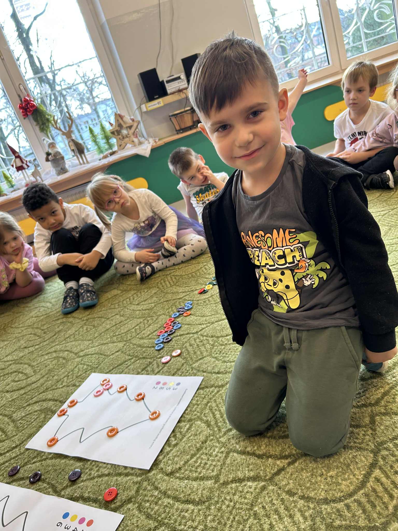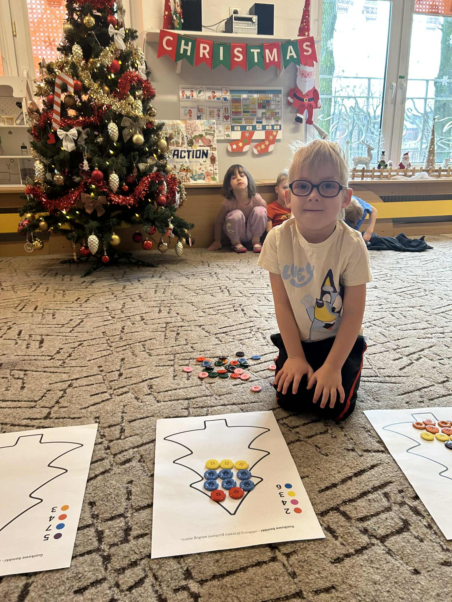 W grudniu realizowany był kolejny temat pt. "Dzień Guzika" w ramach innowacji pedagogicznej „Nietypowe święta w języku angielskim”. Tym razem podczas zajęć języka angielskiego dzieci w ciekawy i angażujący sposób utrwalały liczby oraz kolory, wykonując różnorodne zadania związane z guzikami. Nie zabrakło także kreatywnych prac plastycznych, które sprawiły dzieciom wiele radości i pozwoliły rozwijać wyobraźnię oraz sprawność manualną. Zajęcia przebiegały w miłej atmosferze, a nauka poprzez zabawę była dla dzieci doskonałą okazją do utrwalania poznanych treści.