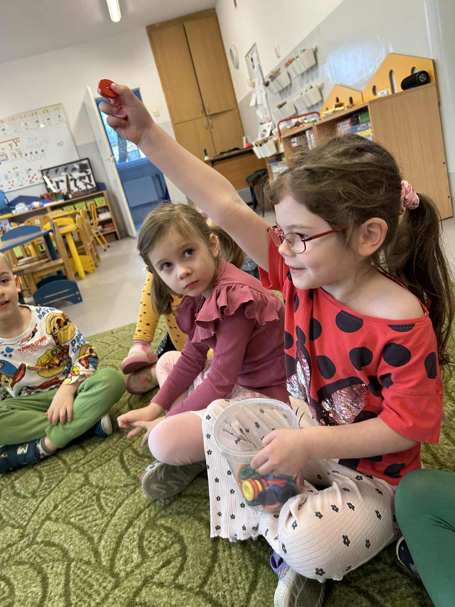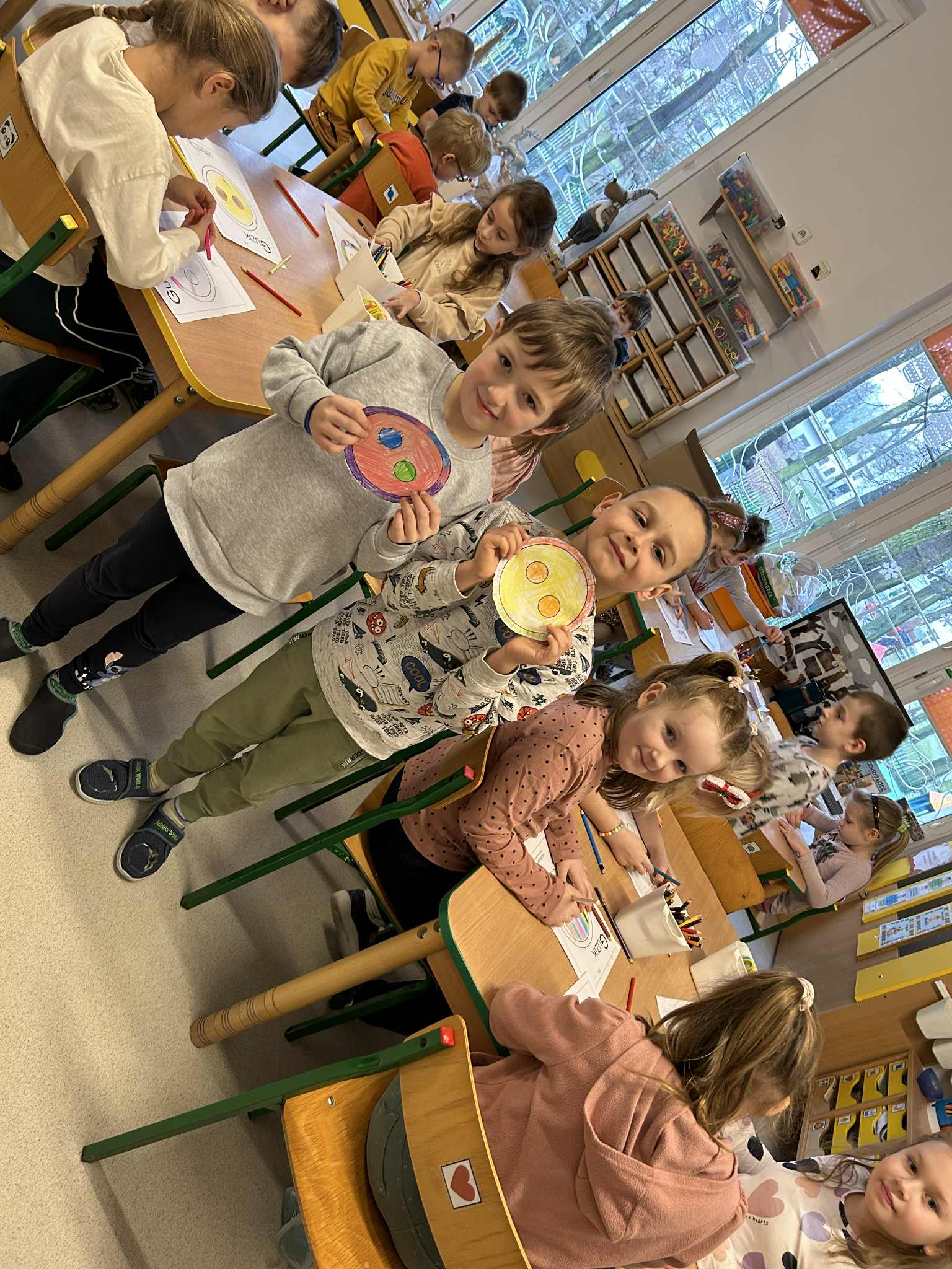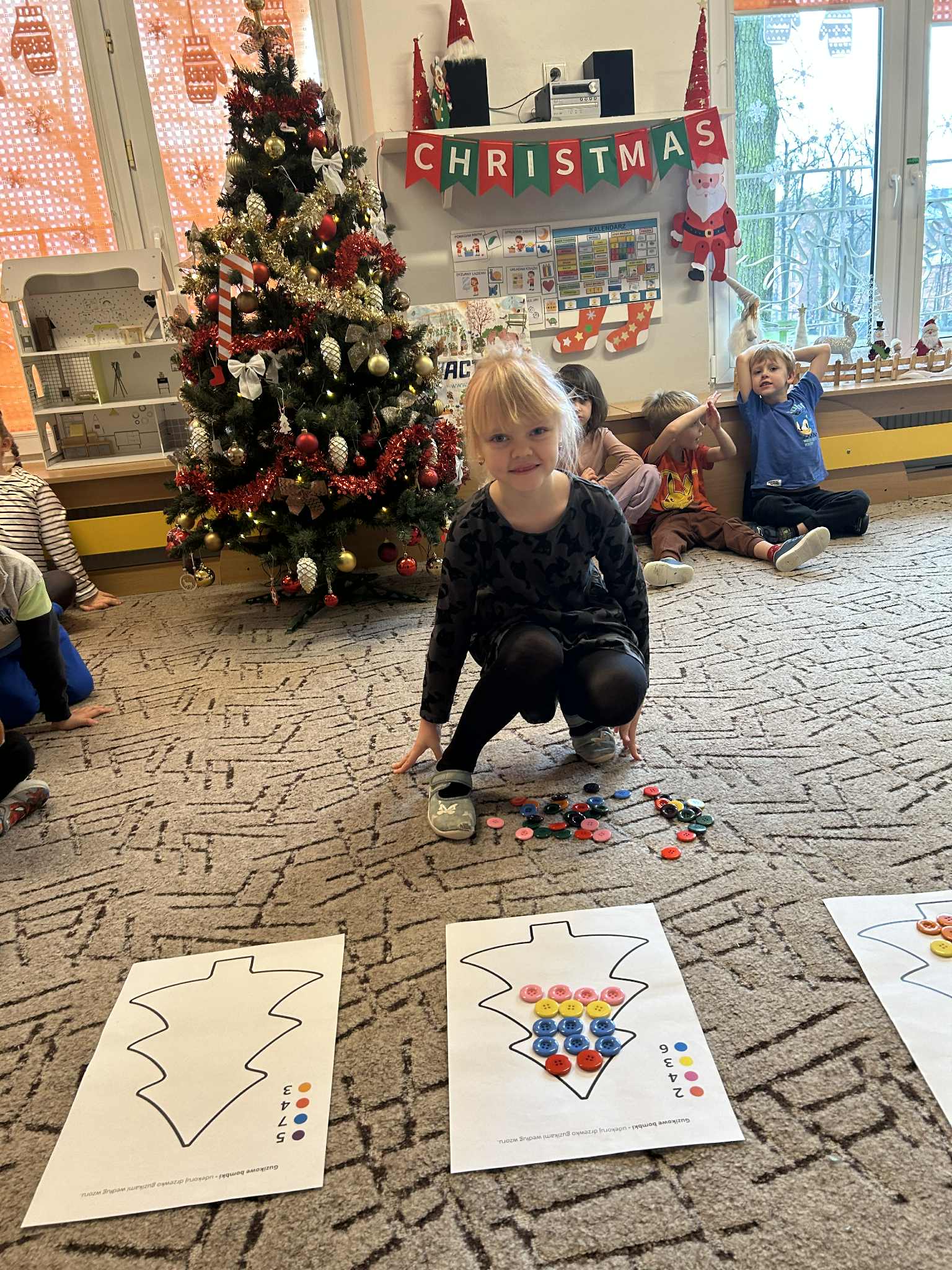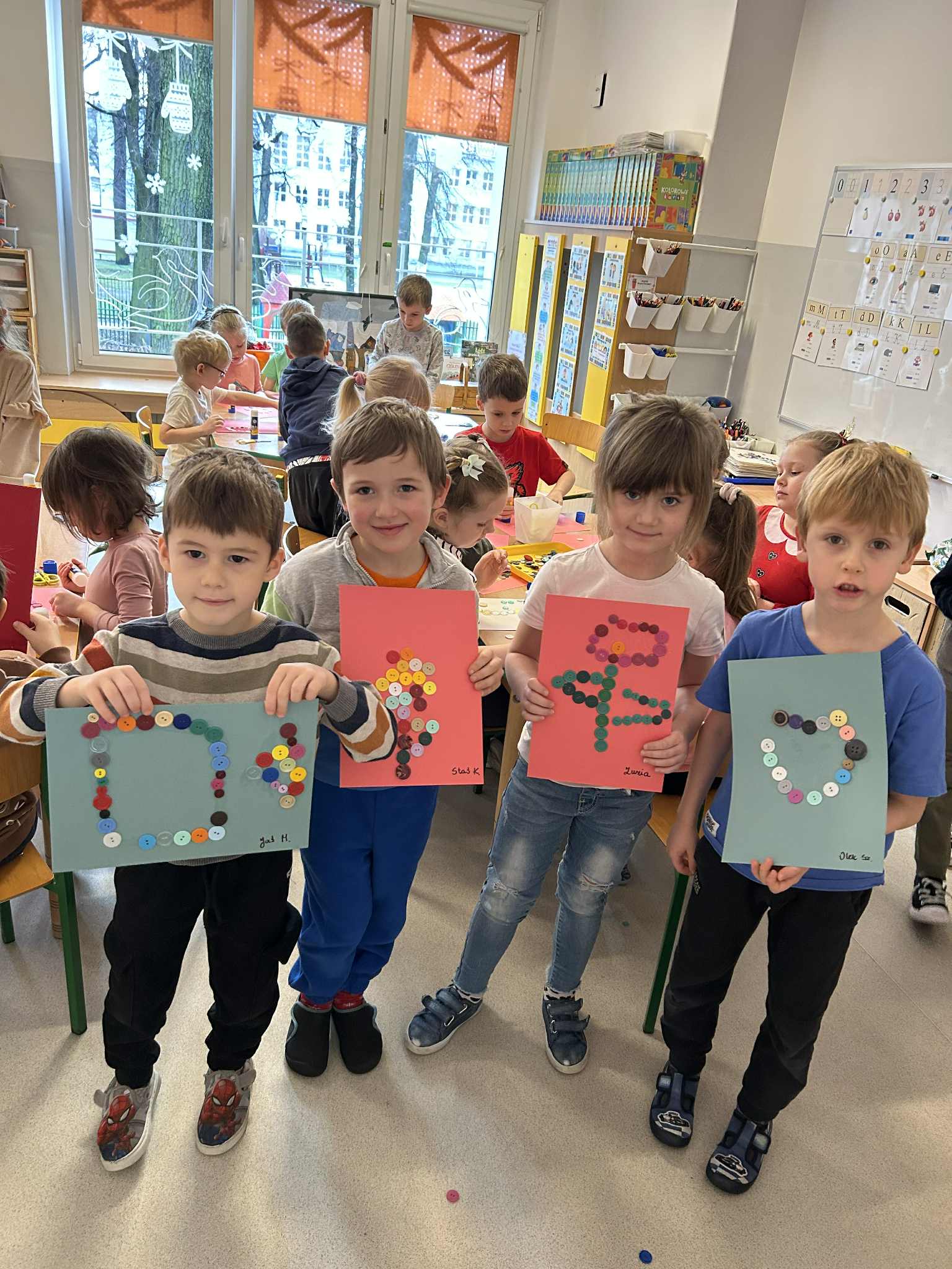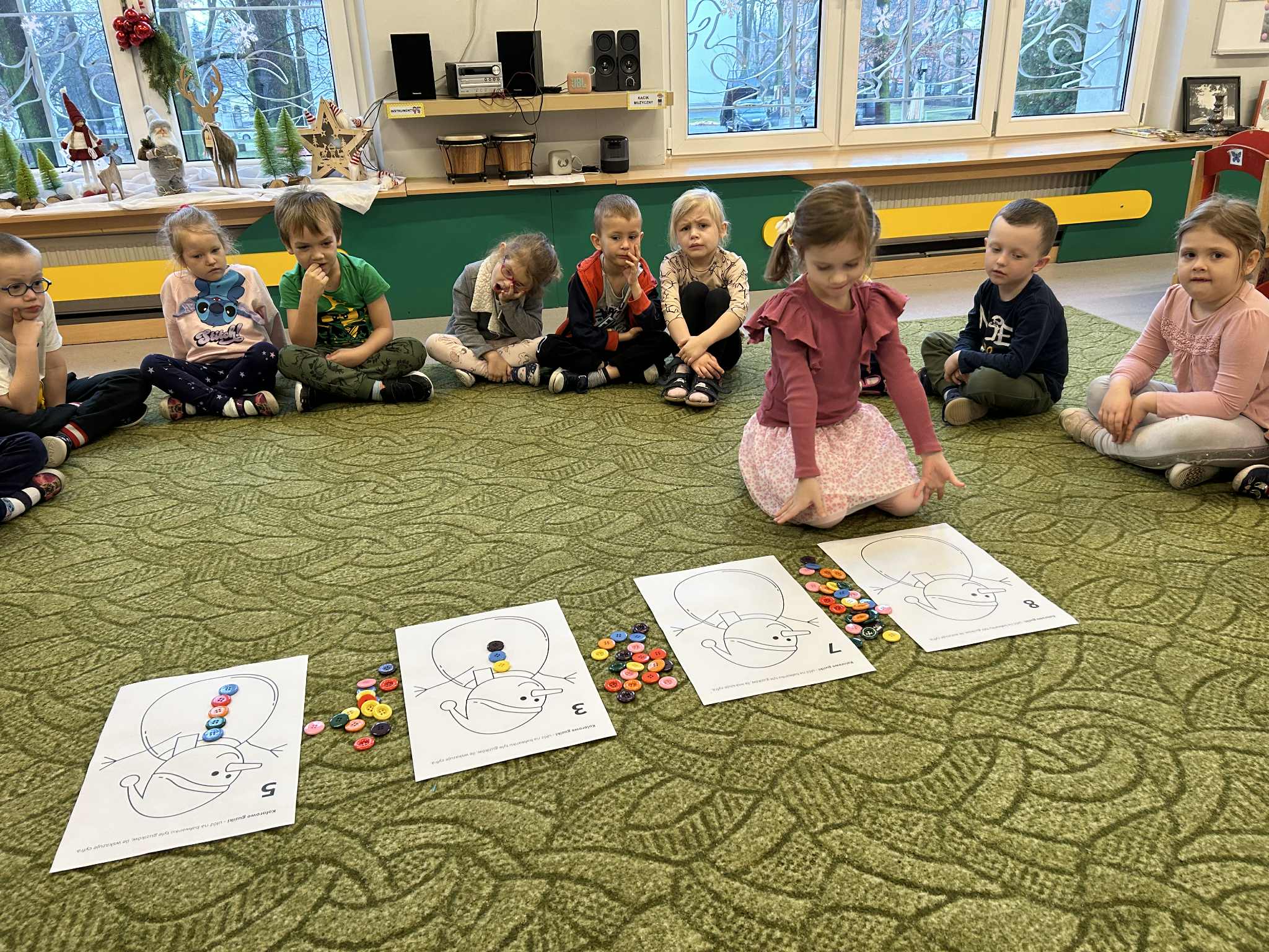 W grudniu realizowany był kolejny temat pt. "Dzień Guzika" w ramach innowacji pedagogicznej „Nietypowe święta w języku angielskim”. Tym razem podczas zajęć języka angielskiego dzieci w ciekawy i angażujący sposób utrwalały liczby oraz kolory, wykonując różnorodne zadania związane z guzikami. Nie zabrakło także kreatywnych prac plastycznych, które sprawiły dzieciom wiele radości i pozwoliły rozwijać wyobraźnię oraz sprawność manualną. Zajęcia przebiegały w miłej atmosferze, a nauka poprzez zabawę była dla dzieci doskonałą okazją do utrwalania poznanych treści.