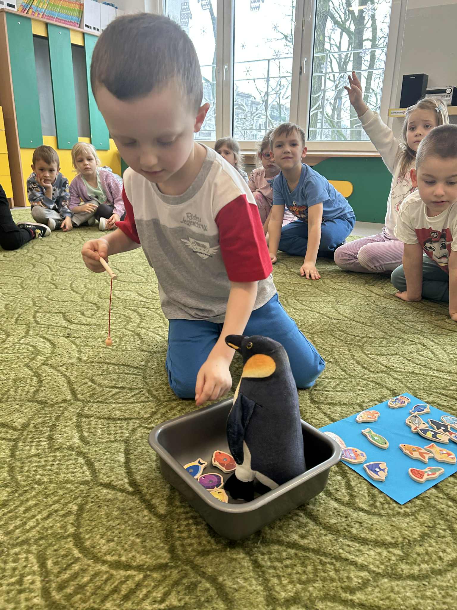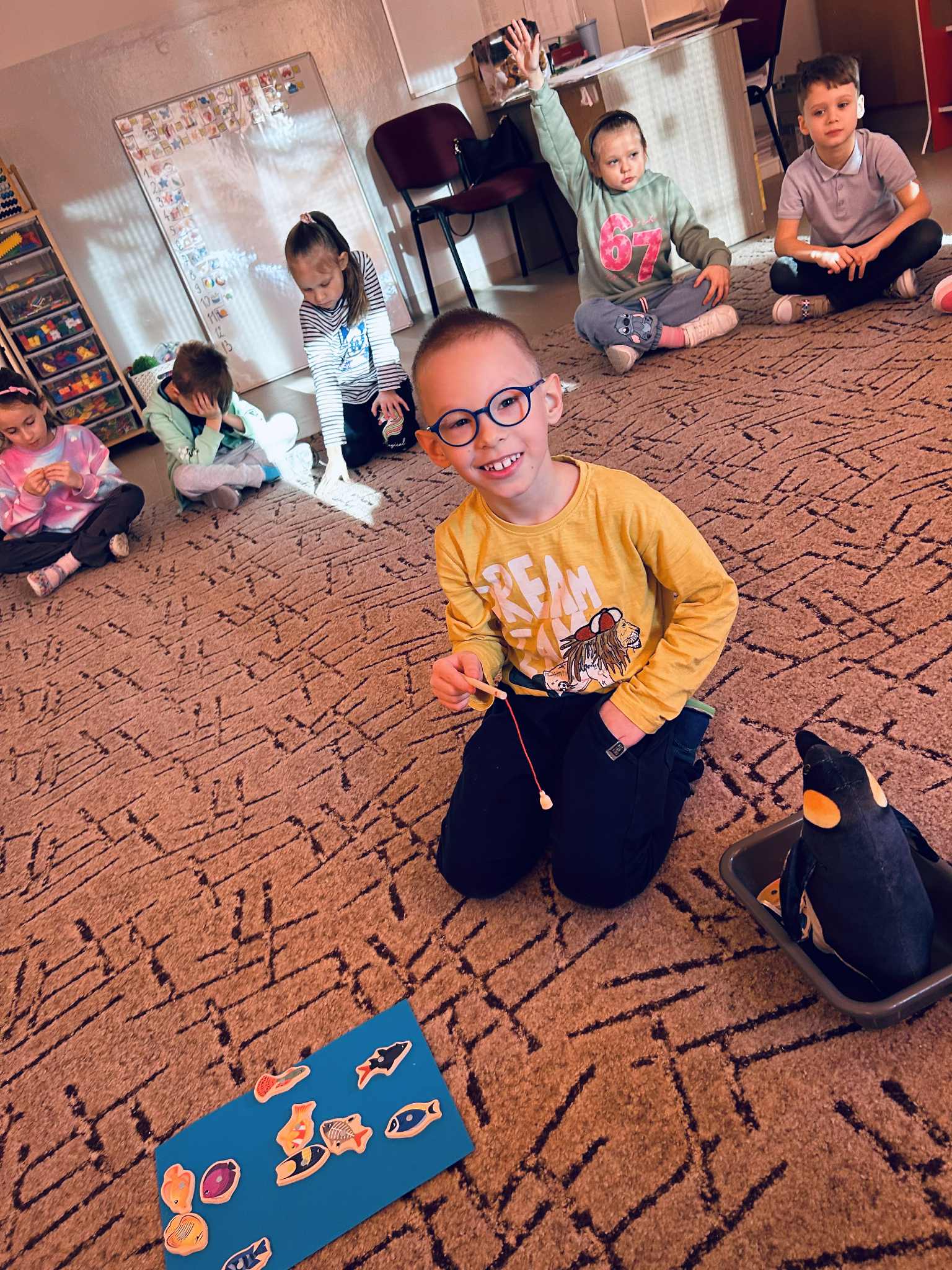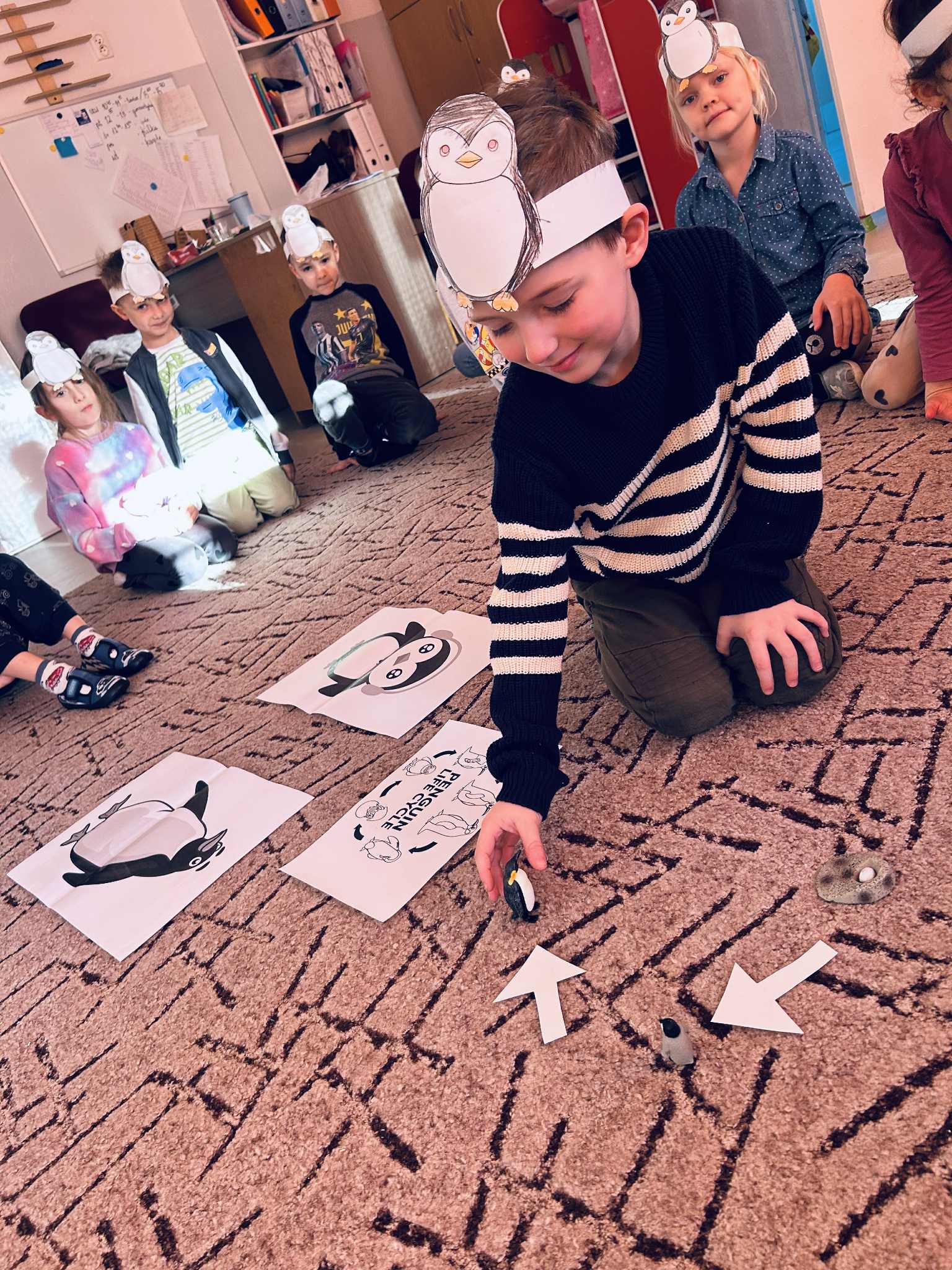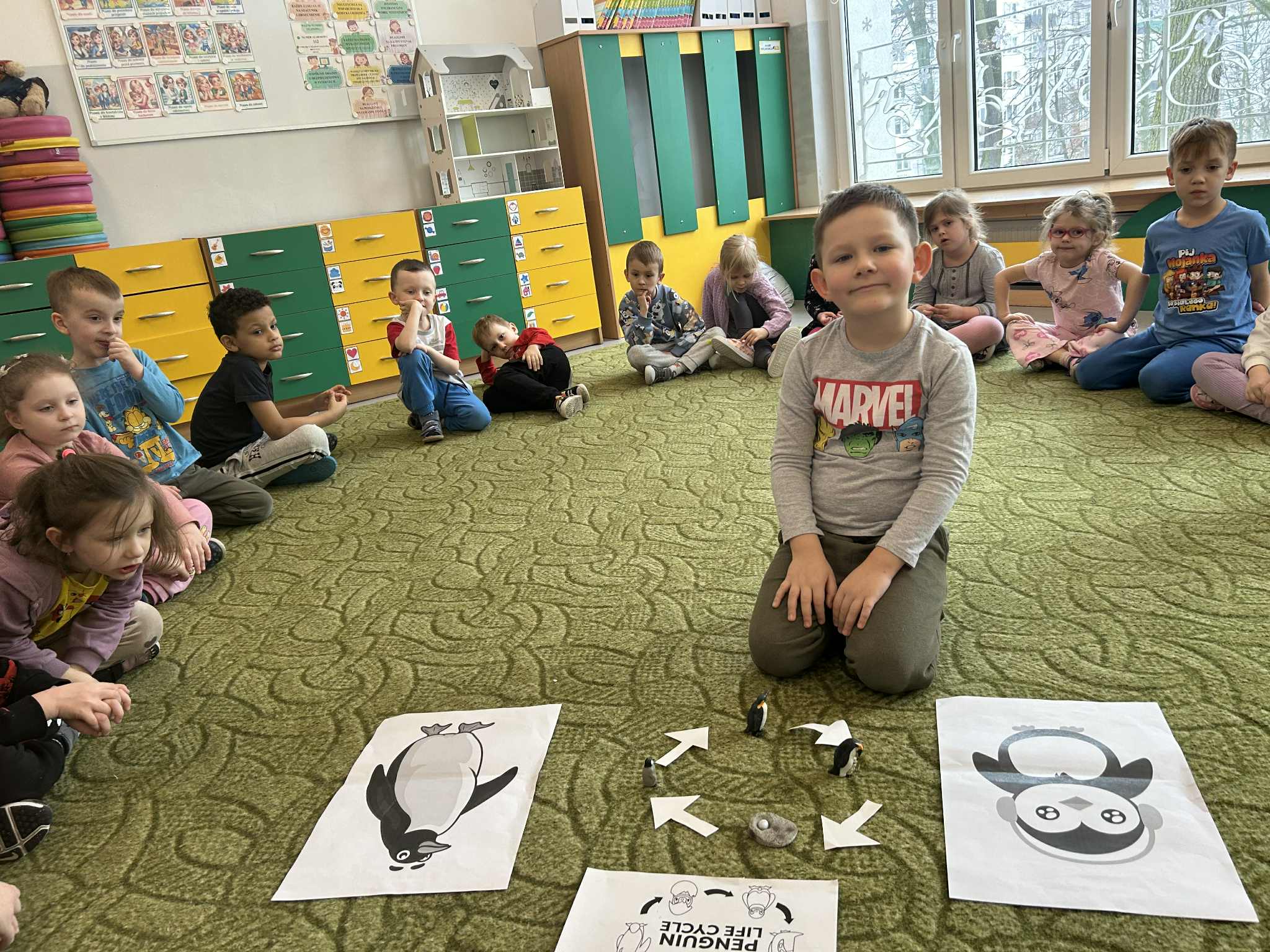 Podczas ostatnich zajęć z języka angielskiego realizowaliśmy temat: Dzień Pingwina. Dzieci z dużym zainteresowaniem poznawały cykl życia pingwina – od jajka, przez pisklę, aż po dorosłego osobnika. Uczyliśmy się nowych słów związanych z tym tematem. Podczas zajęć powtórzyliśmy także kolory, opisywaliśmy wygląd pingwina i jego otoczenie. Nie zabrakło również ruchowych zabaw tematycznych, które pozwoliły dzieciom wcielić się w małe pingwinki i utrwalić nowe słowa poprzez różnorodne aktywności.