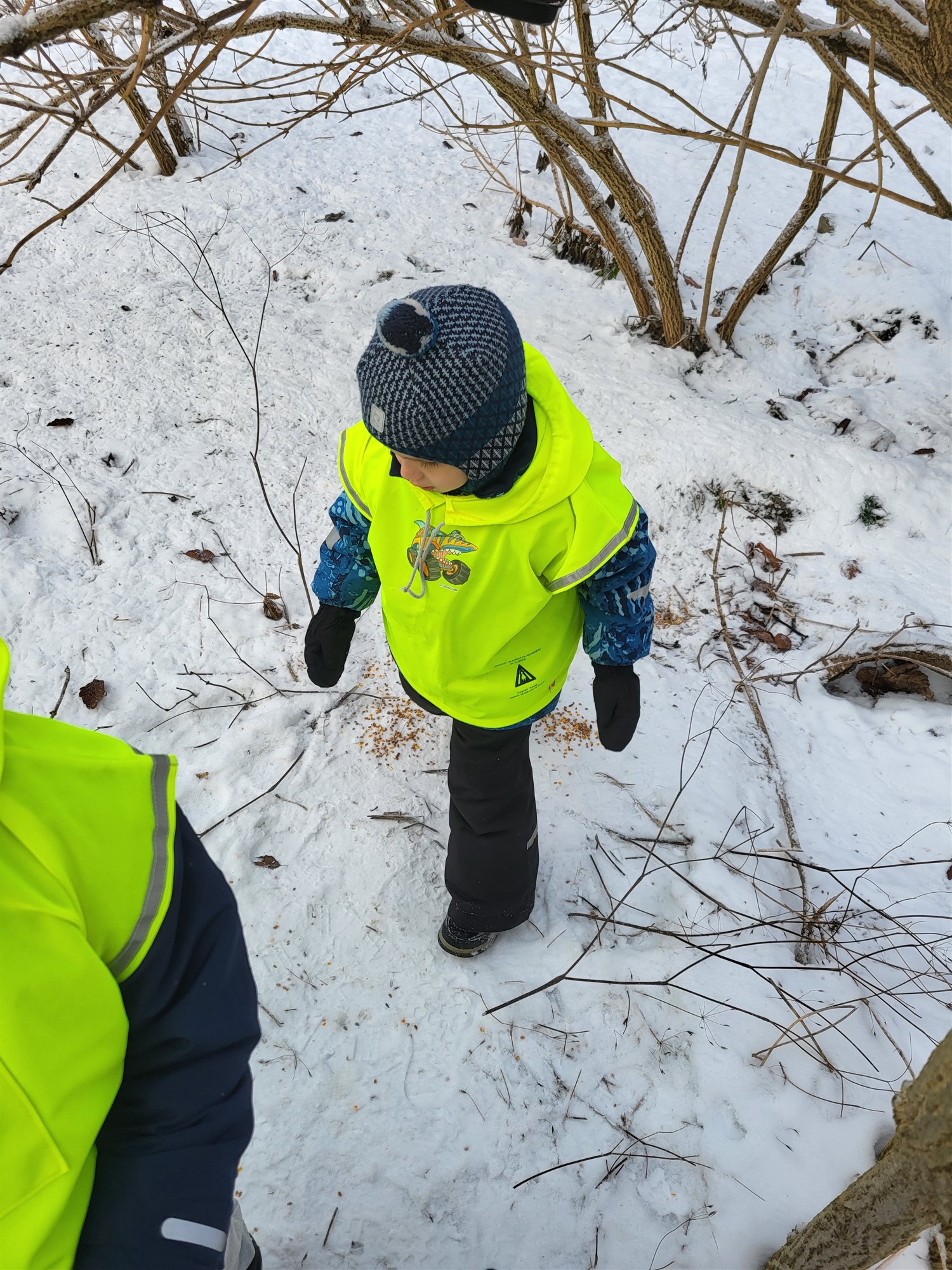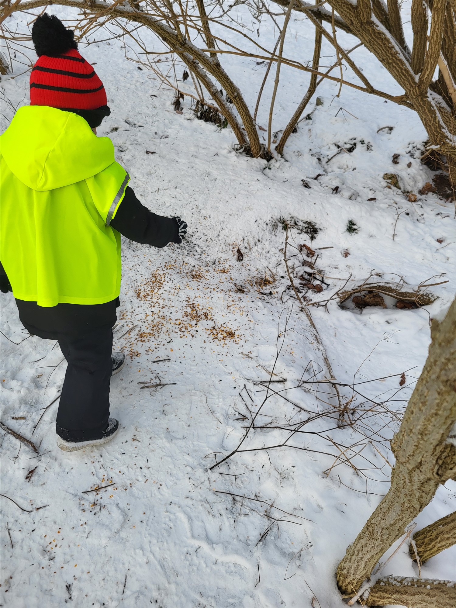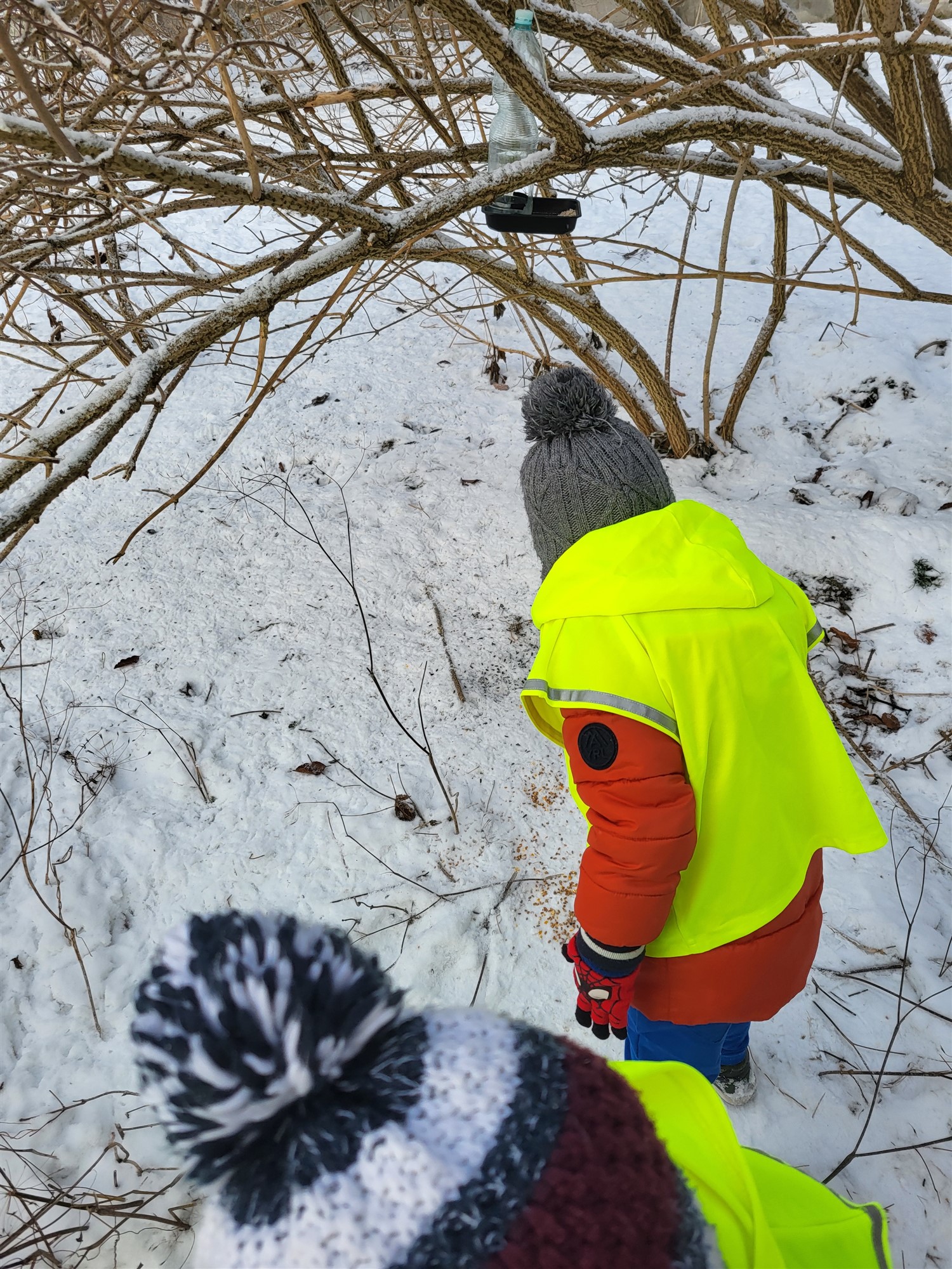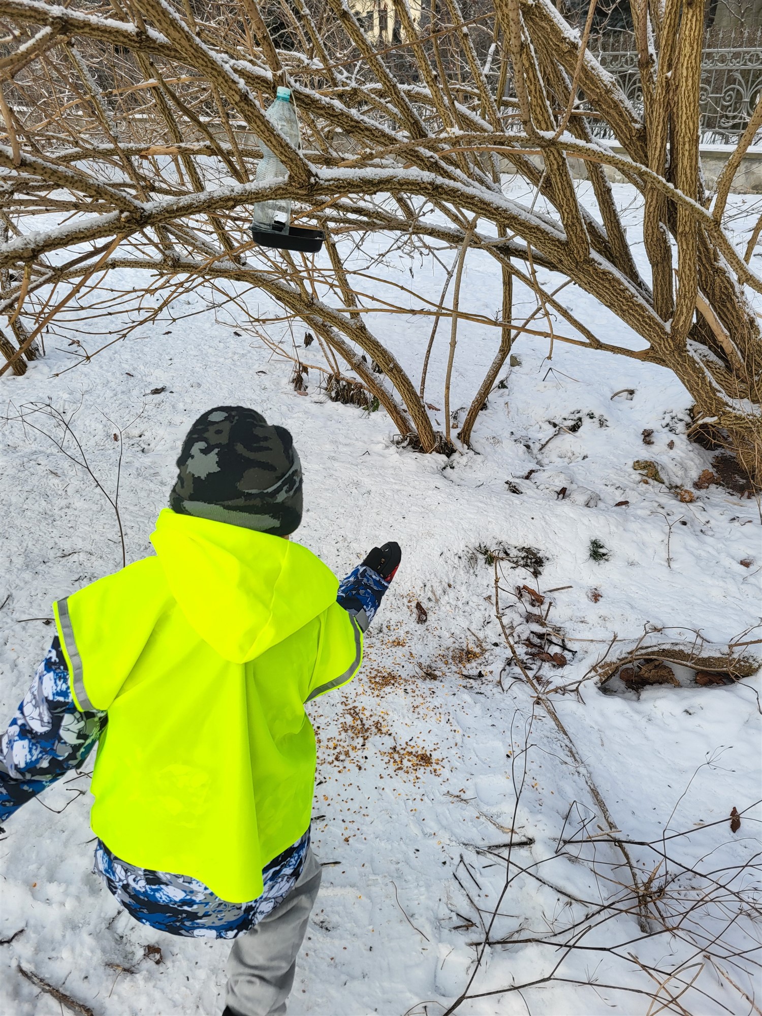 Karmienie ptaków i szaleństwa na śniegu