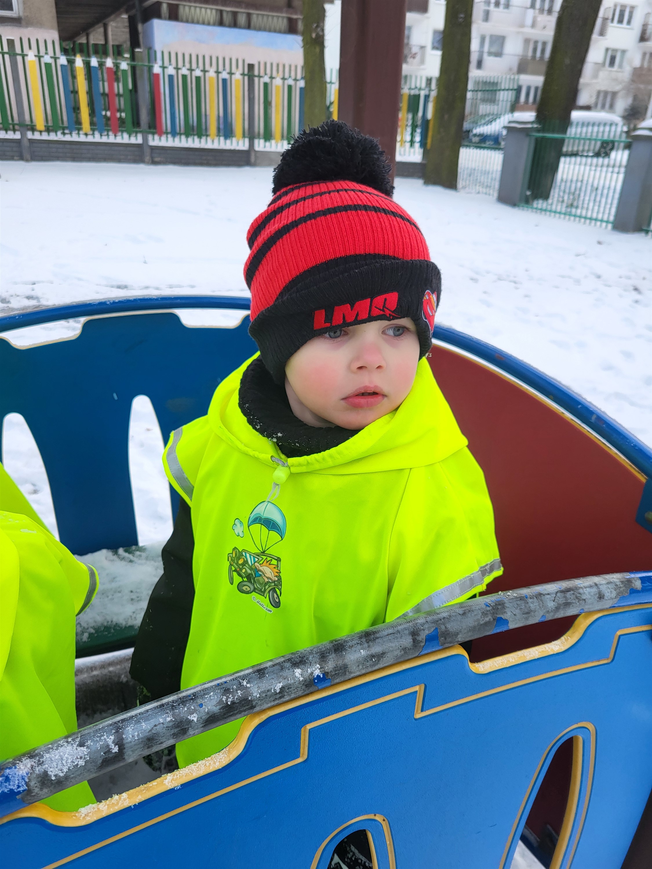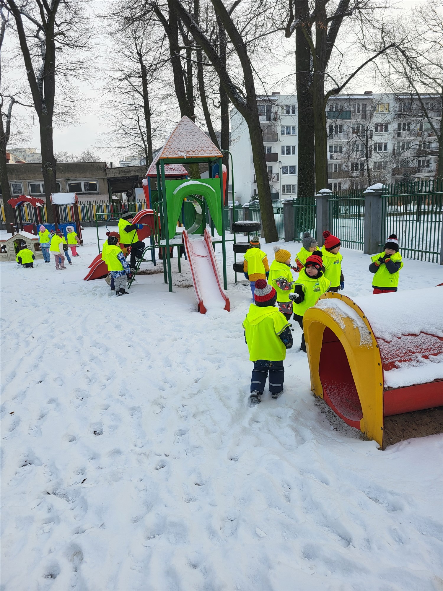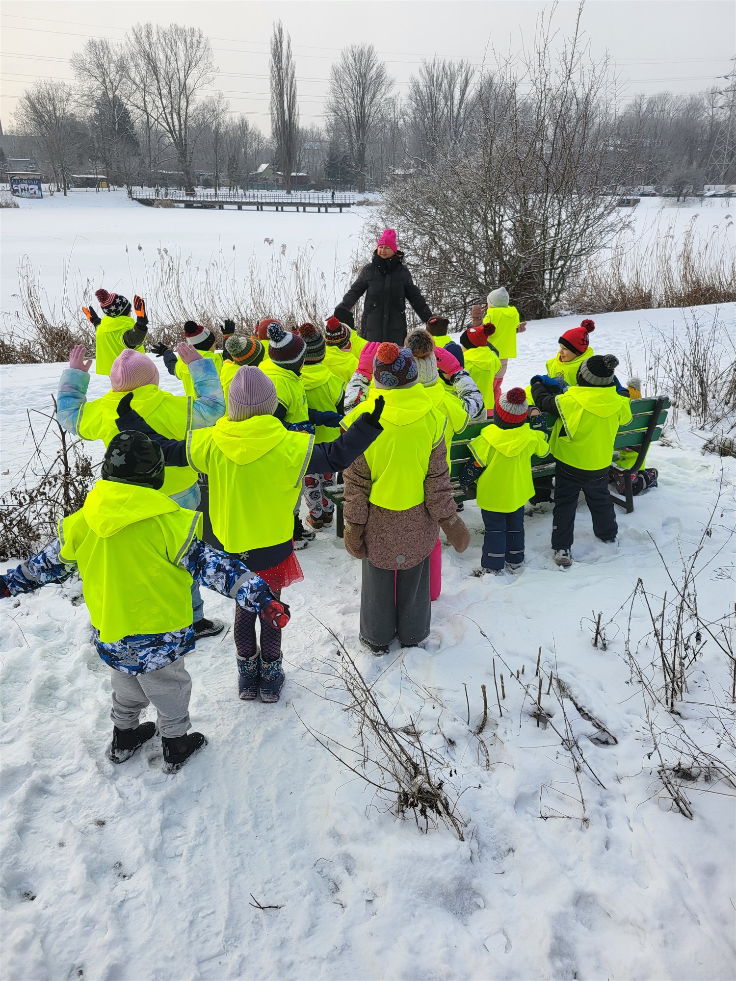 Zaraz po przerwie świątecznej nasza grupa wybrała się na krótki spacer nad pobliski staw w poszukiwaniu kaczek. Niestety kaczek nie spotkaliśmy, jednak znaleźliśmy miejsce pożywienia sikorek i wron. Pamiętaliśmy, że ptaków nie wolno karmić chlebem, który im szkodzi, dlatego mieliśmy ze sobą ziarenka odpowiednie dla tych zwierząt. Uzupełniliśmy karmniki, a pozostały pokarm rozsypaliśmy obok krzaczków. Po powrocie z krótkiego spaceru, odpowiednio ubrani, wykorzystaliśmy pogodę i rzadko widziany śnieg i ruszyliśmy do zabawy. Lepiliśmy śnieżki, ganialiśmy się i po prostu świetnie bawiliśmy. Byłoby super móc jeszcze to powtórzyć.