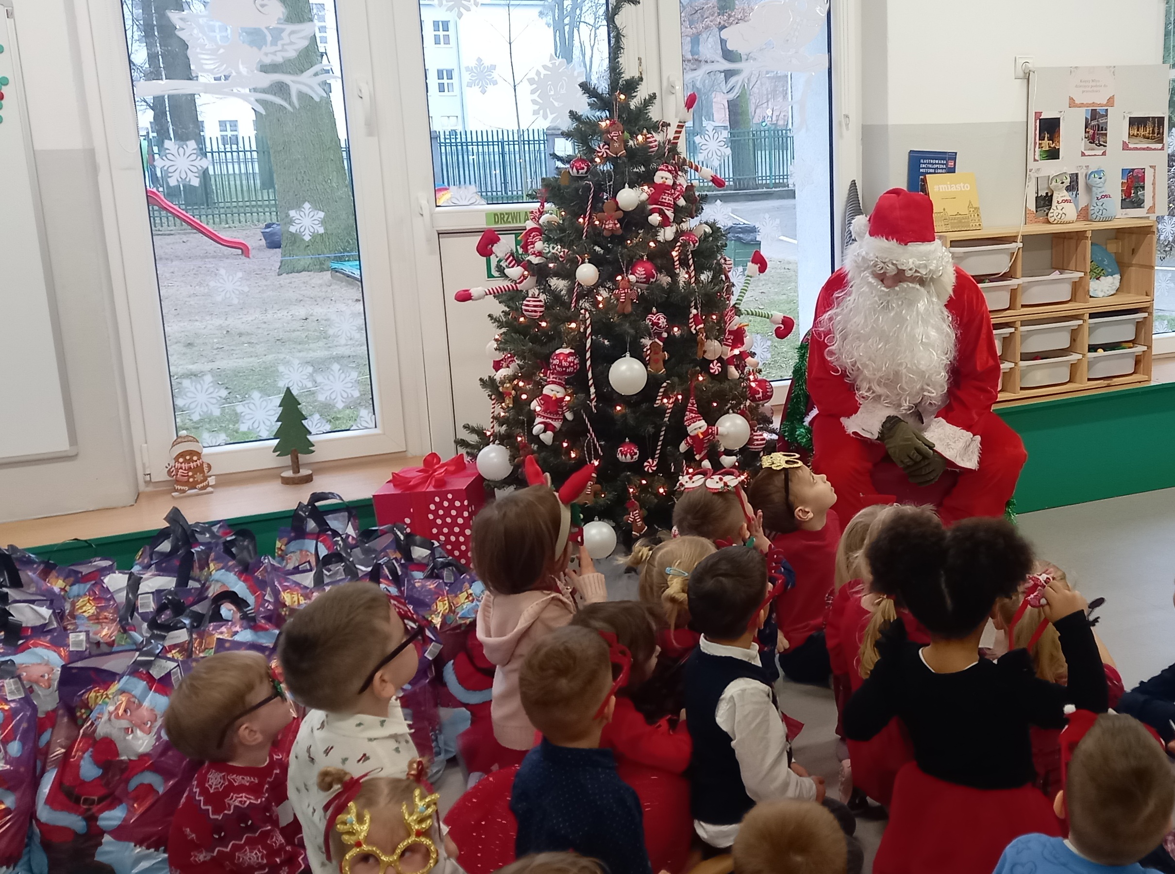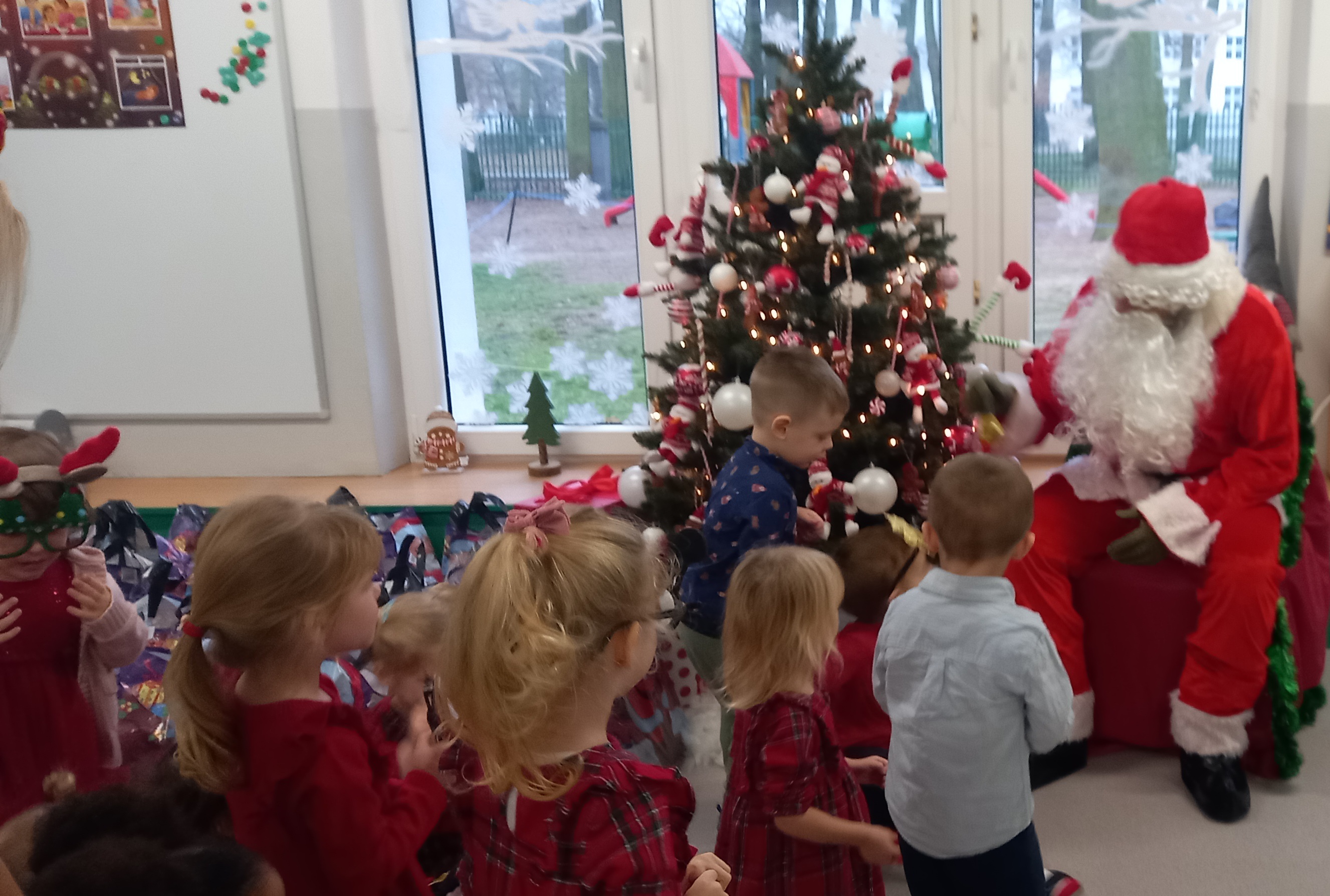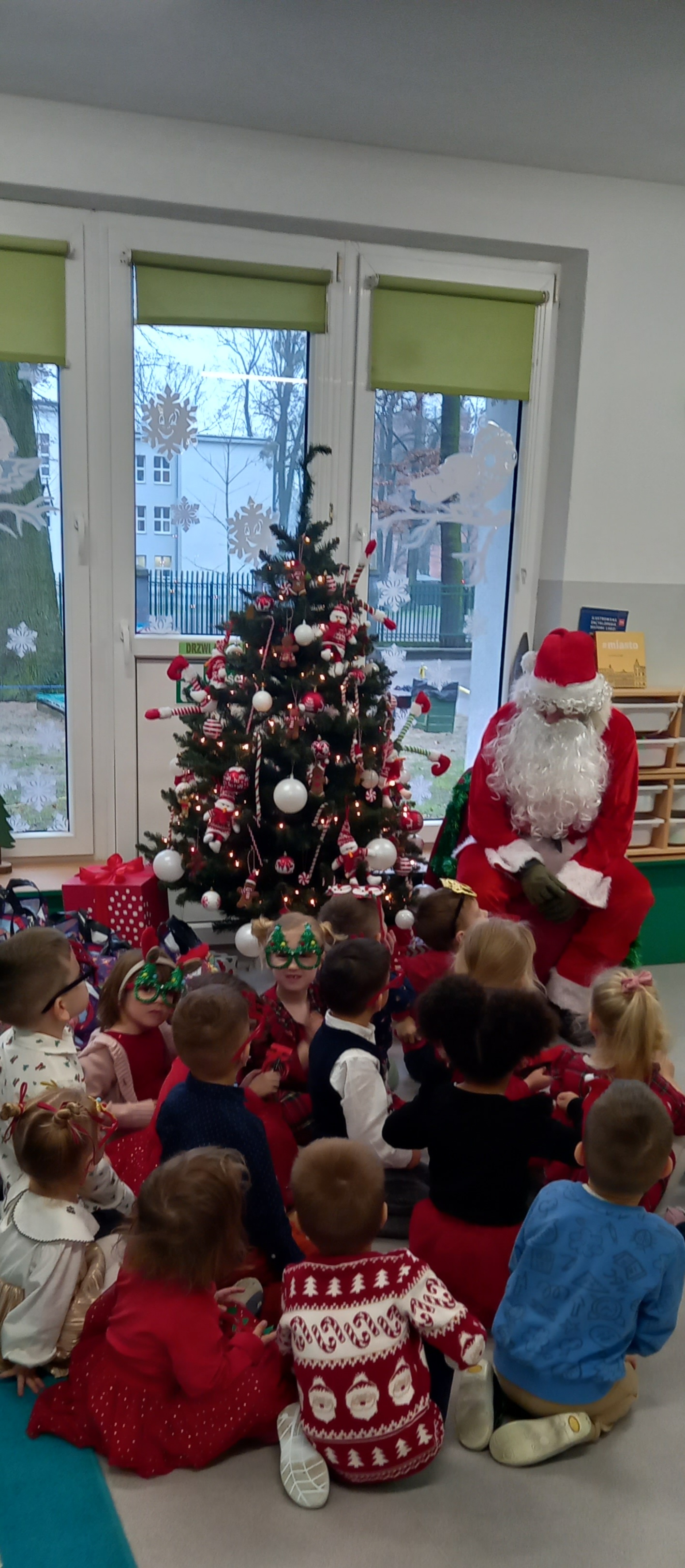 W naszej grupie odbyło się radosne spotkanie ze Świętym Mikołajem. Dzieci z wielkim entuzjazmem powitały gościa, śpiewały piosenki i recytowały wierszyki. Mikołaj obdarował wszystkich prezentami, a spotkanie upłynęło w miłej, świątecznej atmosferze pełnej uśmiechów i radości.