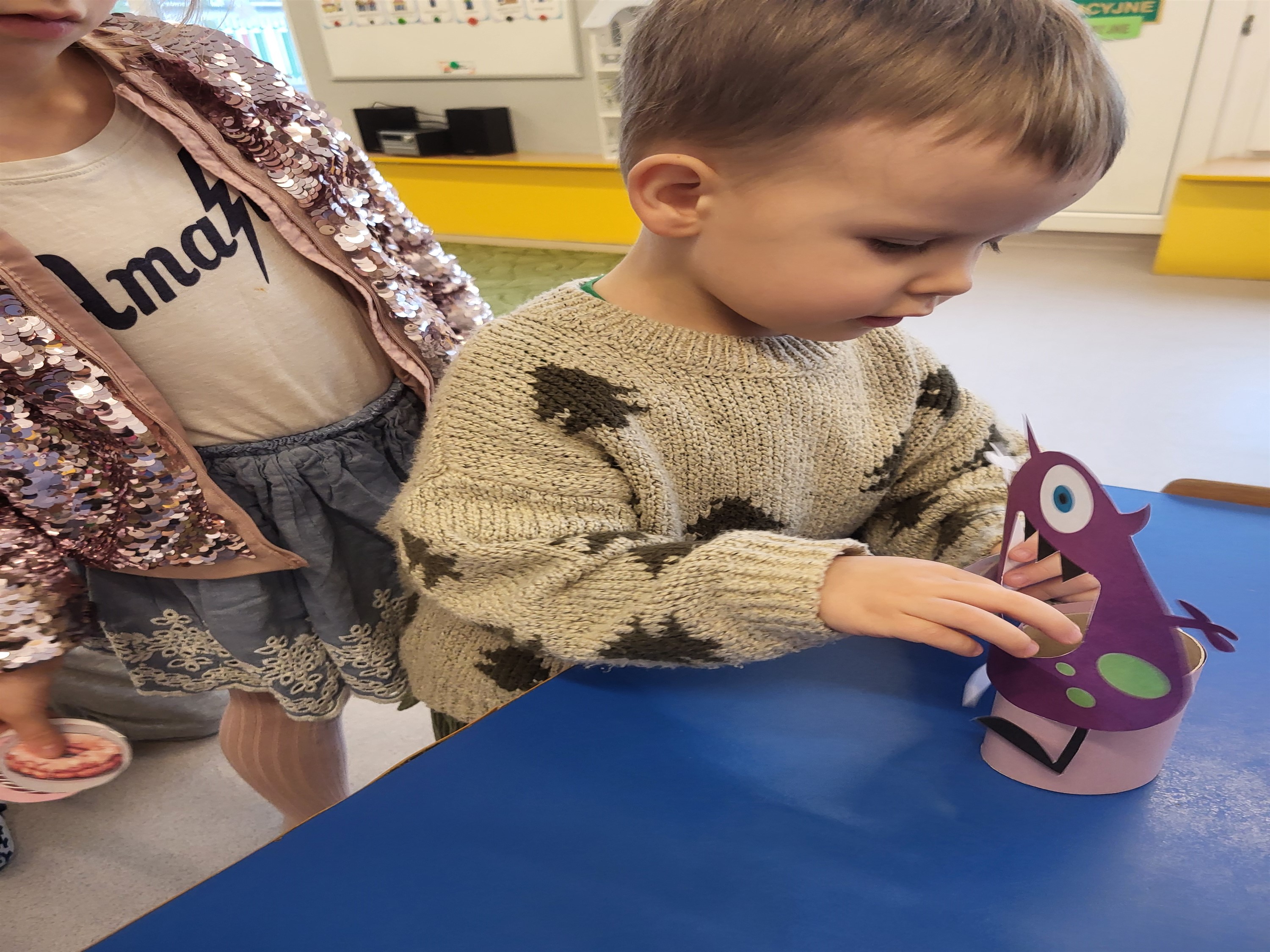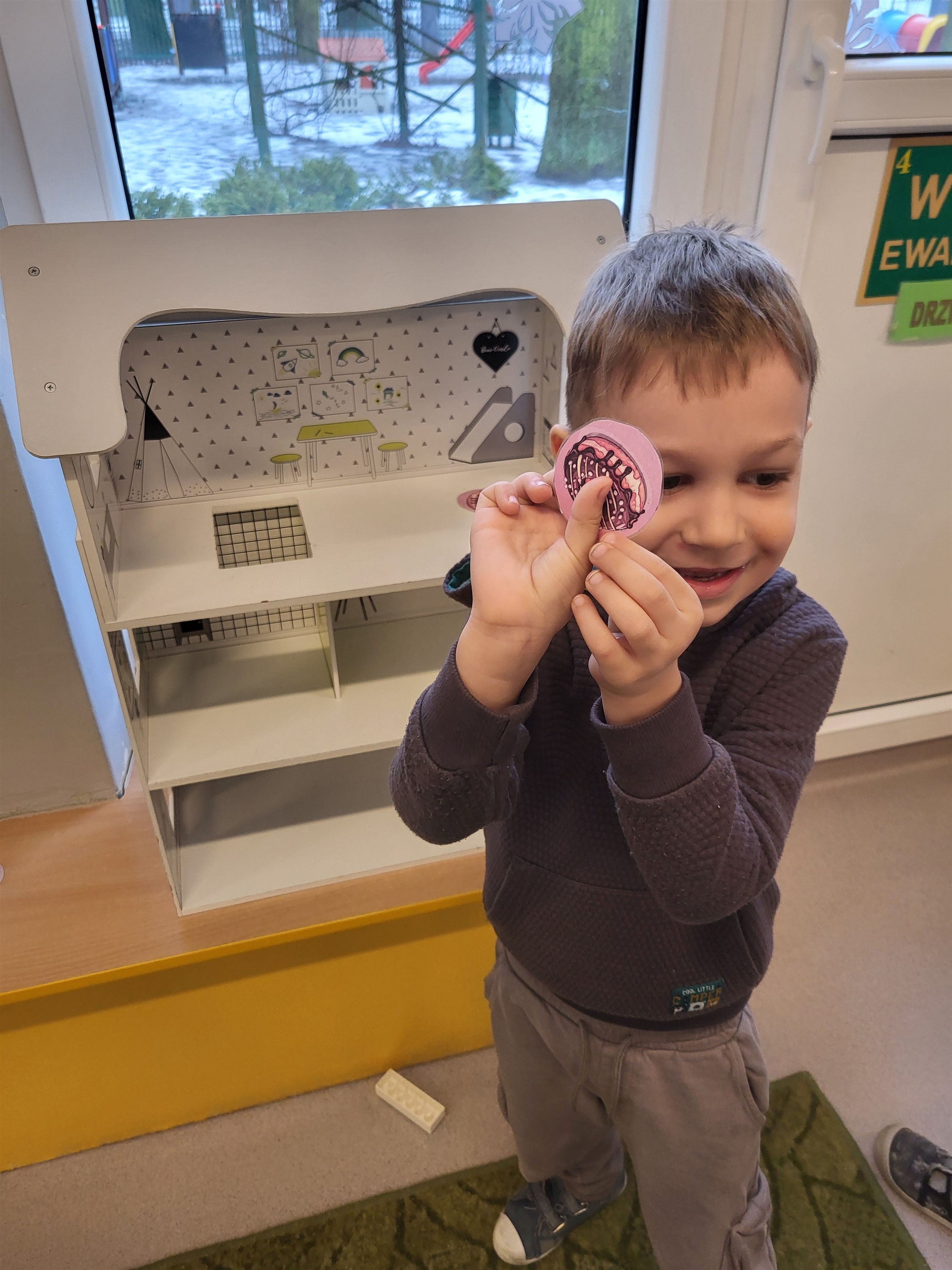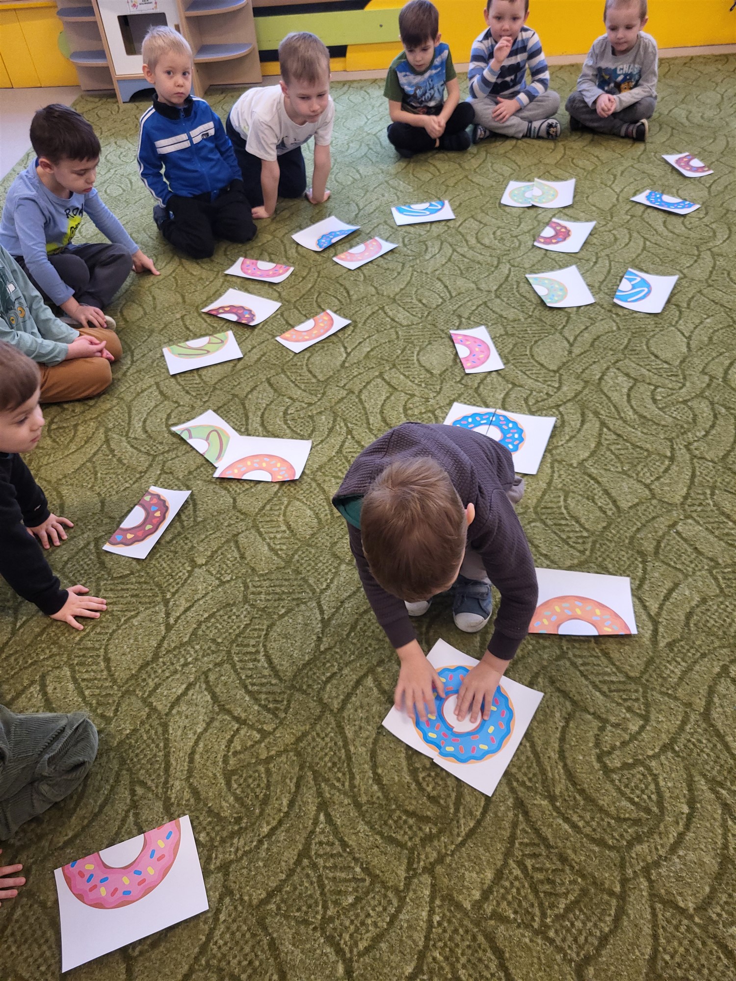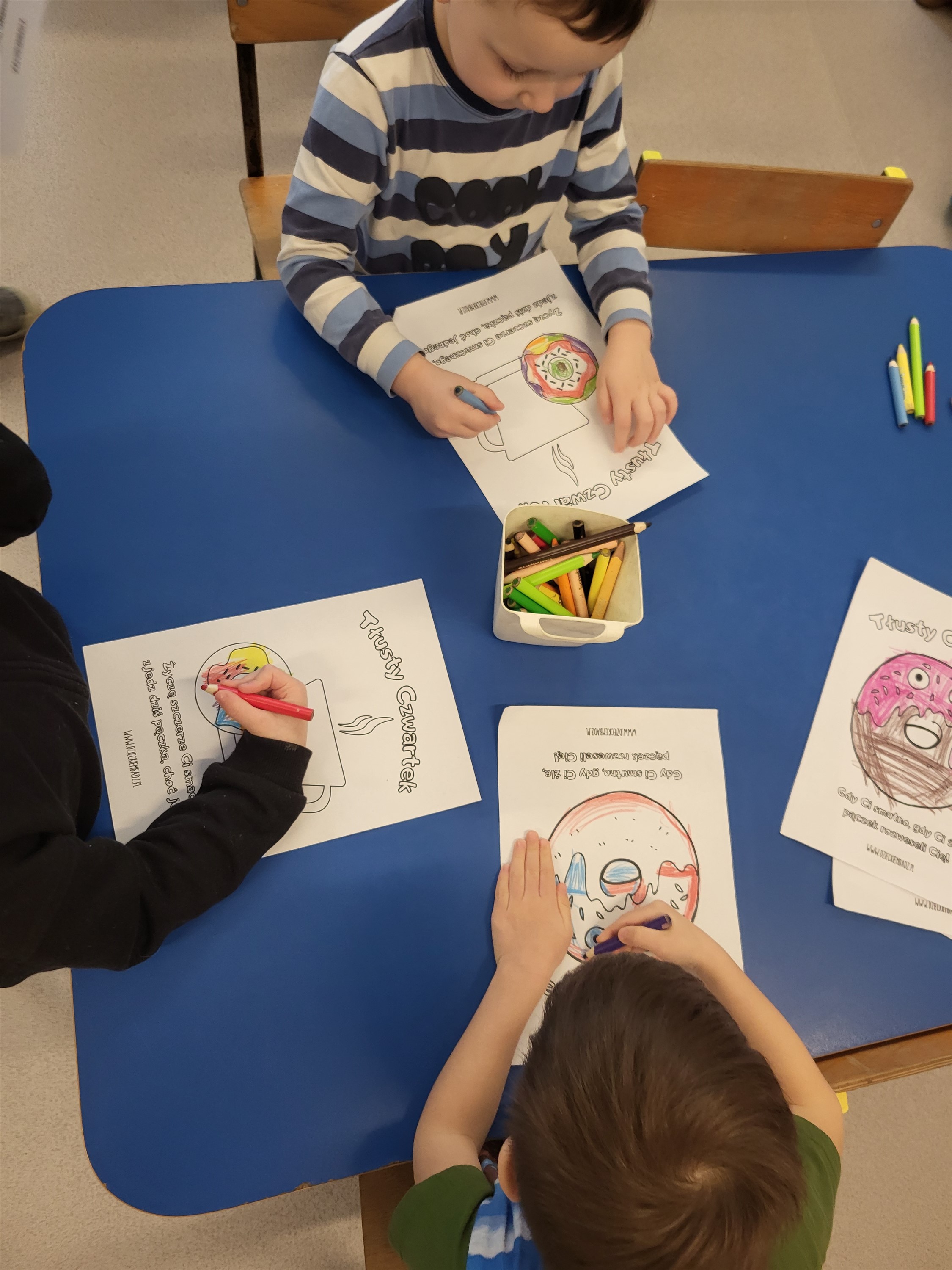 12 lutego był w tym roku bardzo słodki... :) Tego dnia wypadał bowiem Tłusty Czwartek, który jak co roku hucznie świętowaliśmy. Dzień zaczęliśmy od szukania poukrywanych w sali pączków, aby następnie nakarmić nimi naszego nowego przyjaciela - ciasteczkowego potworka. Łączyliśmy też połowy pączków w tym samym kolorze, graliśmy w pączkowe memory i wykonaliśmy pączkową kolorowankę. Nie mogło się też obyć bez tych prawdziwych pączków, które wypełniły nasze brzuchy podczas podwieczorku. To był wyjątkowo... pączasty :) dzień.