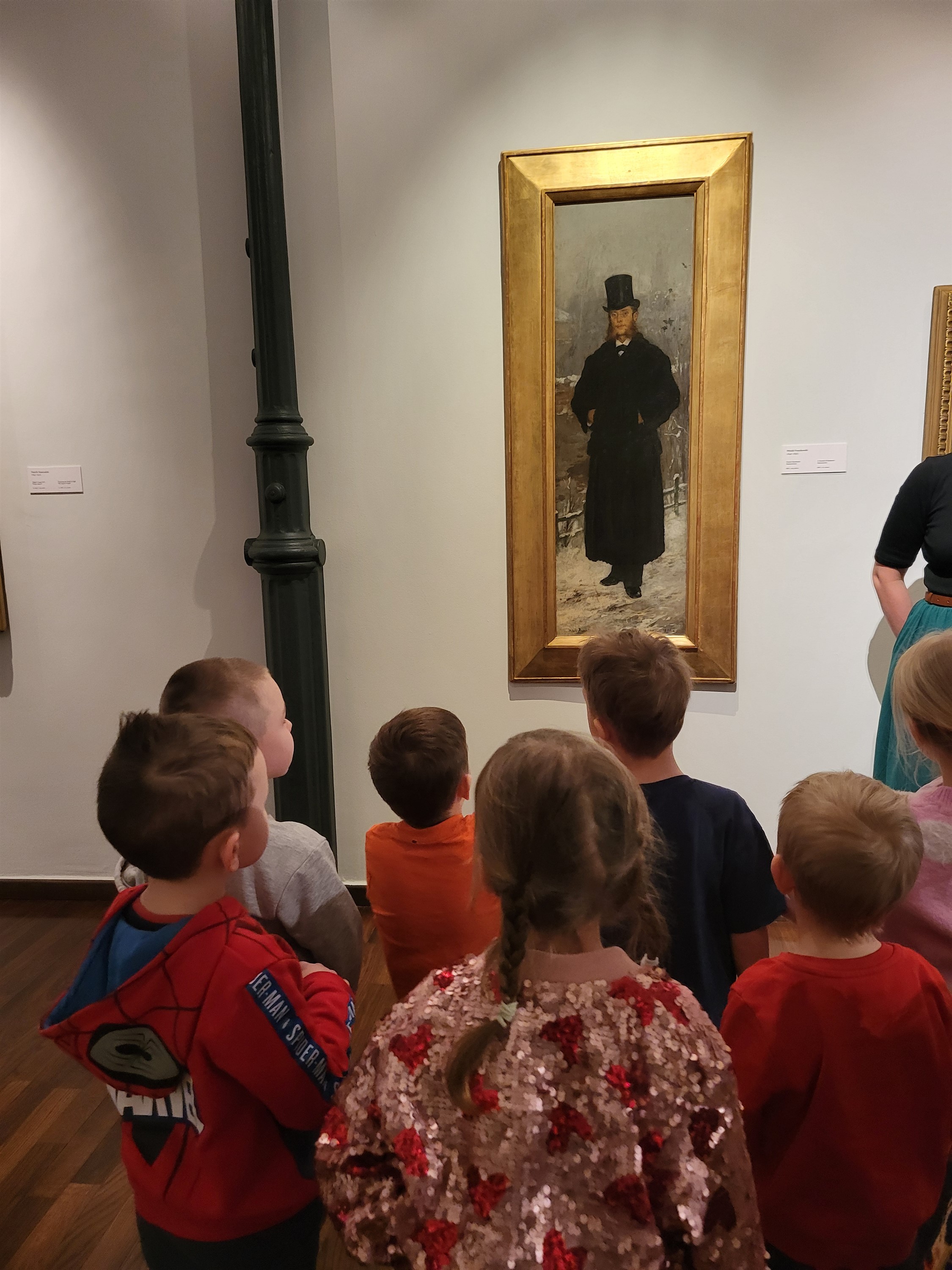 6 marca wzięliśmy udział w przedostatnich warsztatach w ramach Akademii Malucha w Muzeum Pałac Herbsta. Tym razem tematem zajęć były portrety oraz pojęcie atrybutu. Po przejściu Galerii Sztuki, obejrzeniu obrazów i znalezieniu na nich wcześniej wspomnianych atrybutów, mieliśmy okazję sami stworzyć portret, a nawet autoportret. Każdy namalował obraz samego siebie, z uwzględnieniem atrybutu, który go określa. To były ciekawe zajęcia, pobudzające wyobraźnię każdego z nas. Nie możemy doczekać się kolejnych, ostatnich już warsztatów w tym roku szkolnym.