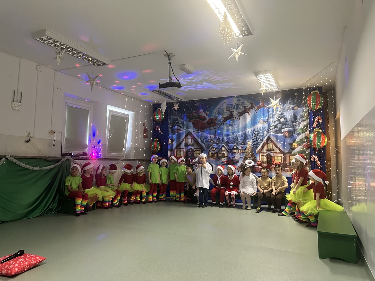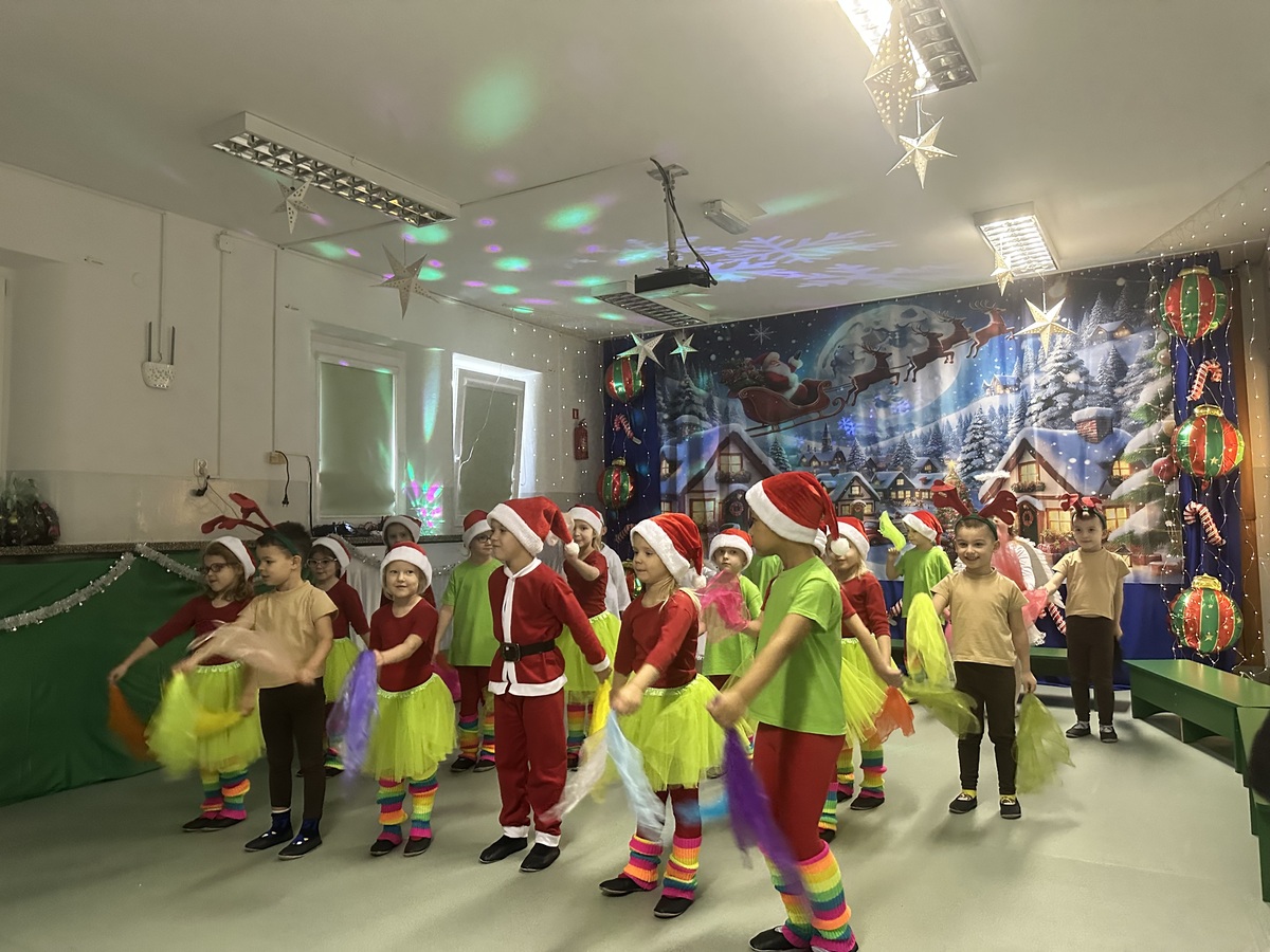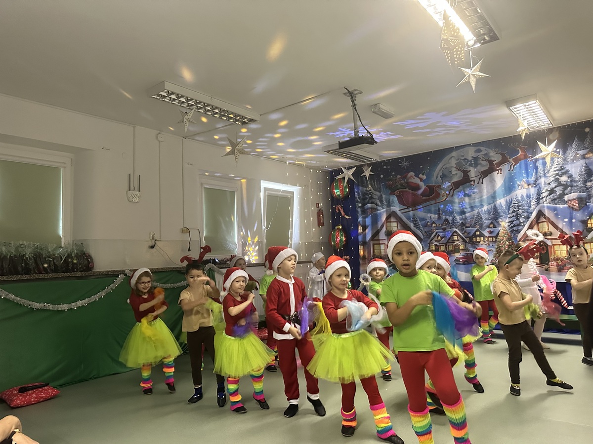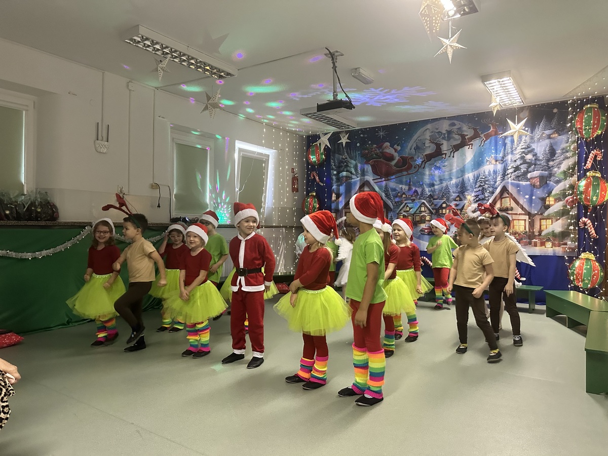 17 grudnia zaprosiliśmy naszych Rodziców na niezwykle spotkanie świąteczne. W zabawnym przedstawieniu pokazaliśmy co może się wydarzyć, kiedy elfy i renifery rozchorują się przed samymi świętami. W ferworze przygotowań Mikołaj wraz z żoną ratował świętą z pomocą aniołów. Dzięki usilnym staraniom wszystkie dzieci mogły otrzymać świąteczne prezenty. Dzieci z wielkim entuzjazmem śpiewały piosenki oraz wcielały się w role elfów, reniferów, Mikołaja, Mikołajowej oraz lekarza. Na zakończenie wszyscy wręczyli Rodzicom własnoręcznie wykonane wianki świąteczne, składając przy tym najlepsze życzenia. To był magiczny dzień.