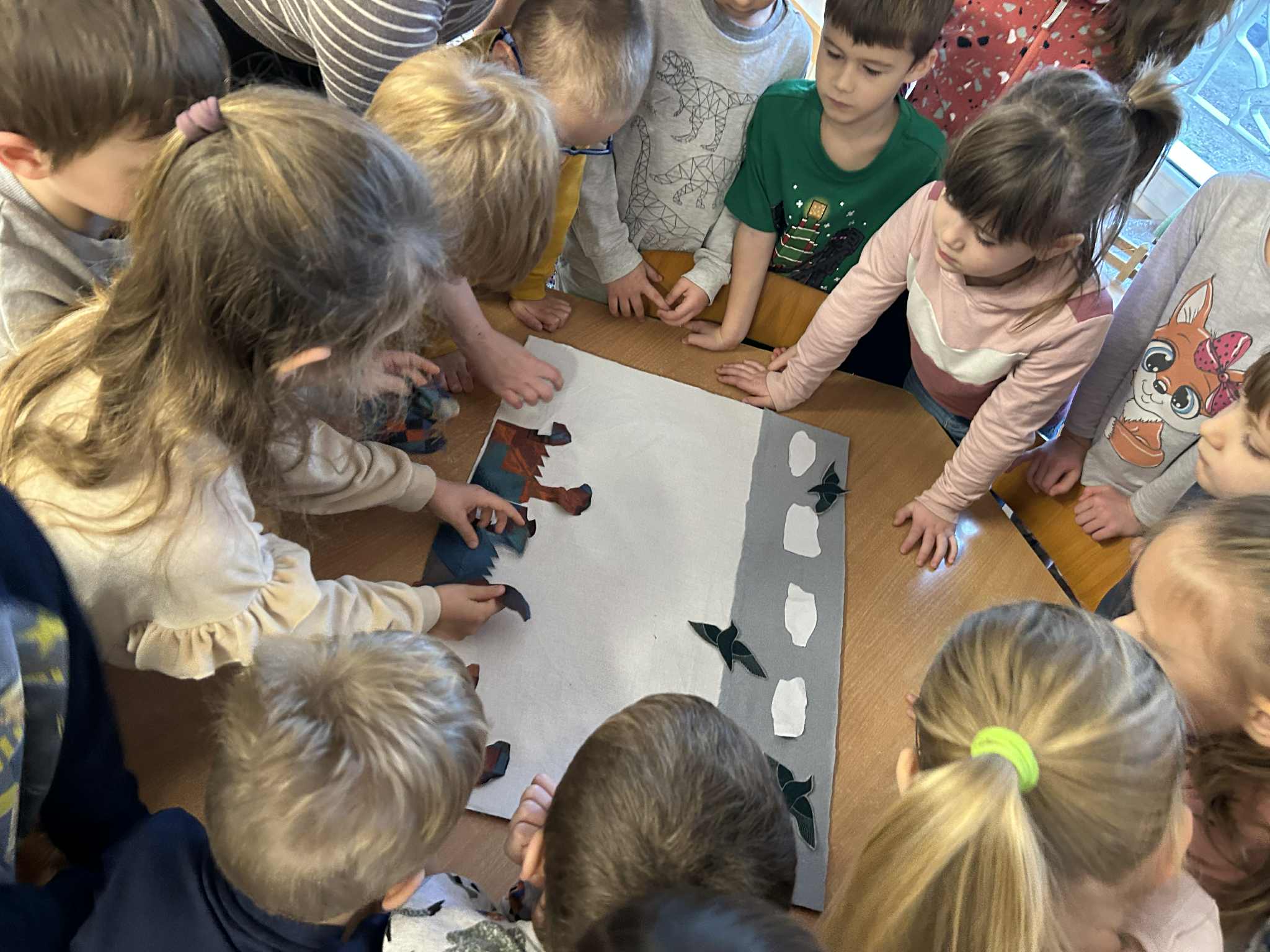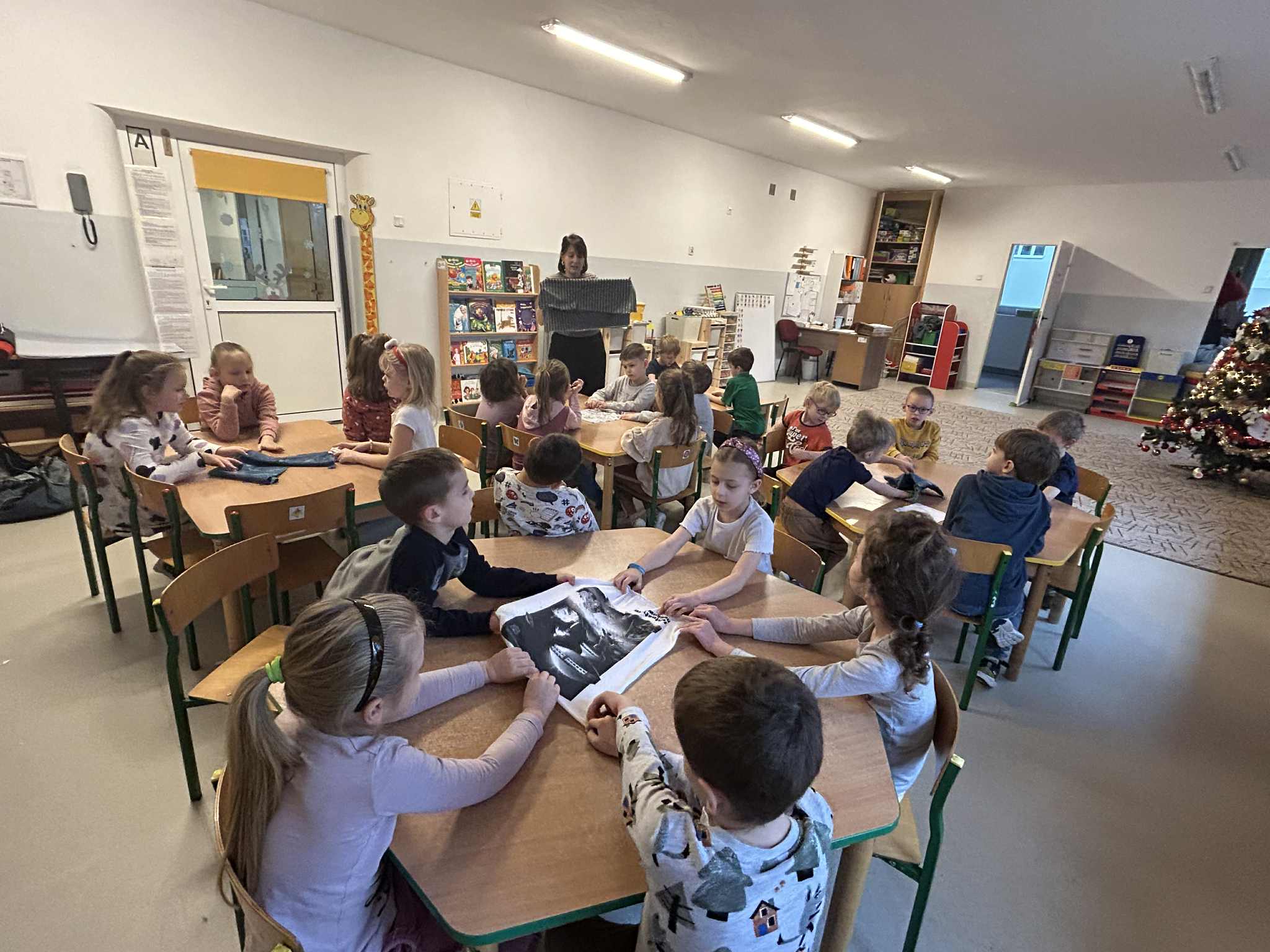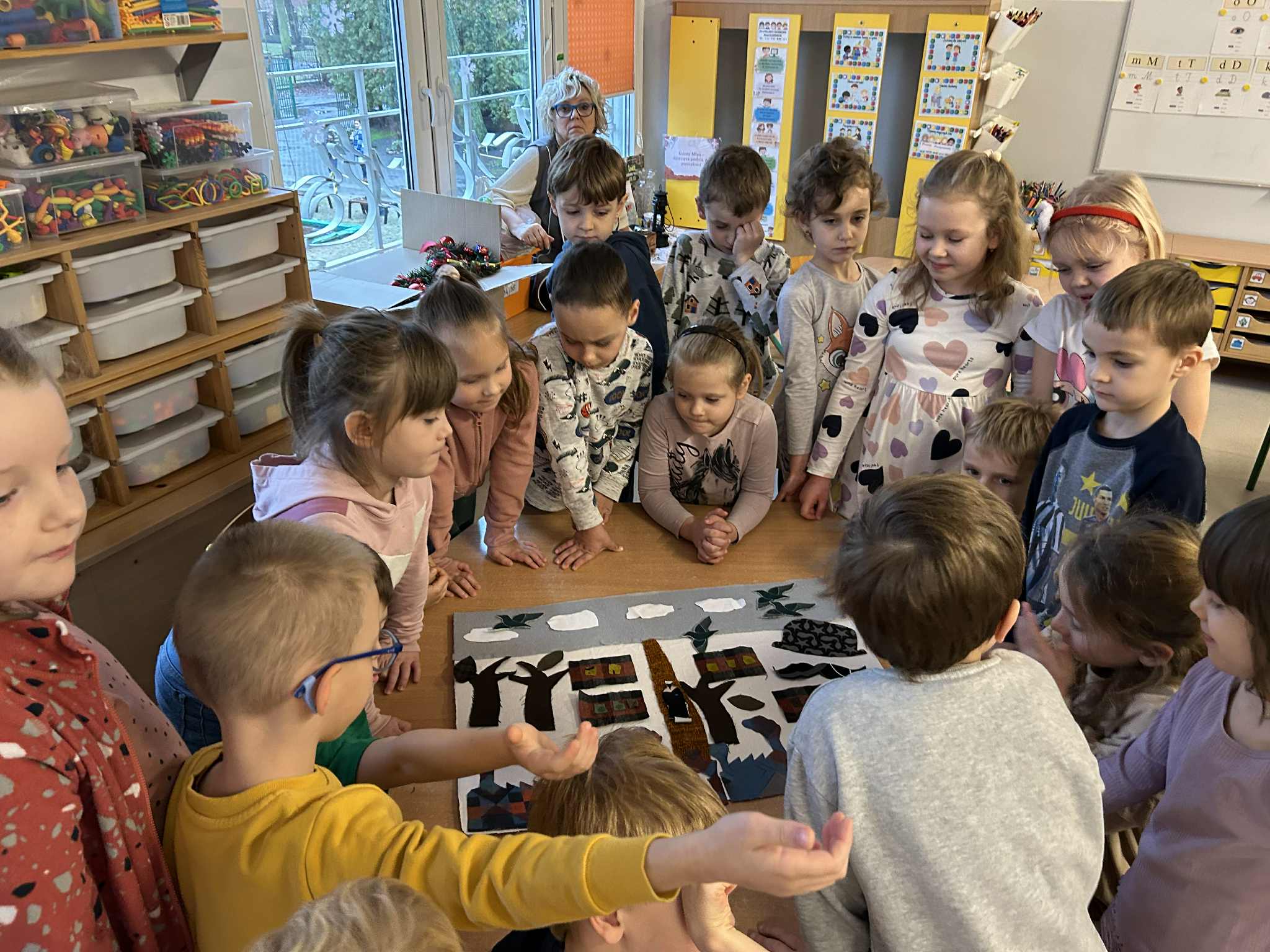 9 grudnia odbyły się warsztaty artystyczne, podczas których dzieci miały okazję oglądać i poznawać różnorodne materiały. Zajęcia pobudzały ciekawość, kreatywność oraz wyobraźnię dzieci. Na zakończenie dzieci samodzielnie stworzyły grupowy obraz, wykorzystując materiały różnego rodzaju. Wspólna praca przyniosła wiele radości i była doskonałą okazją do współdziałania oraz twórczej ekspresji.