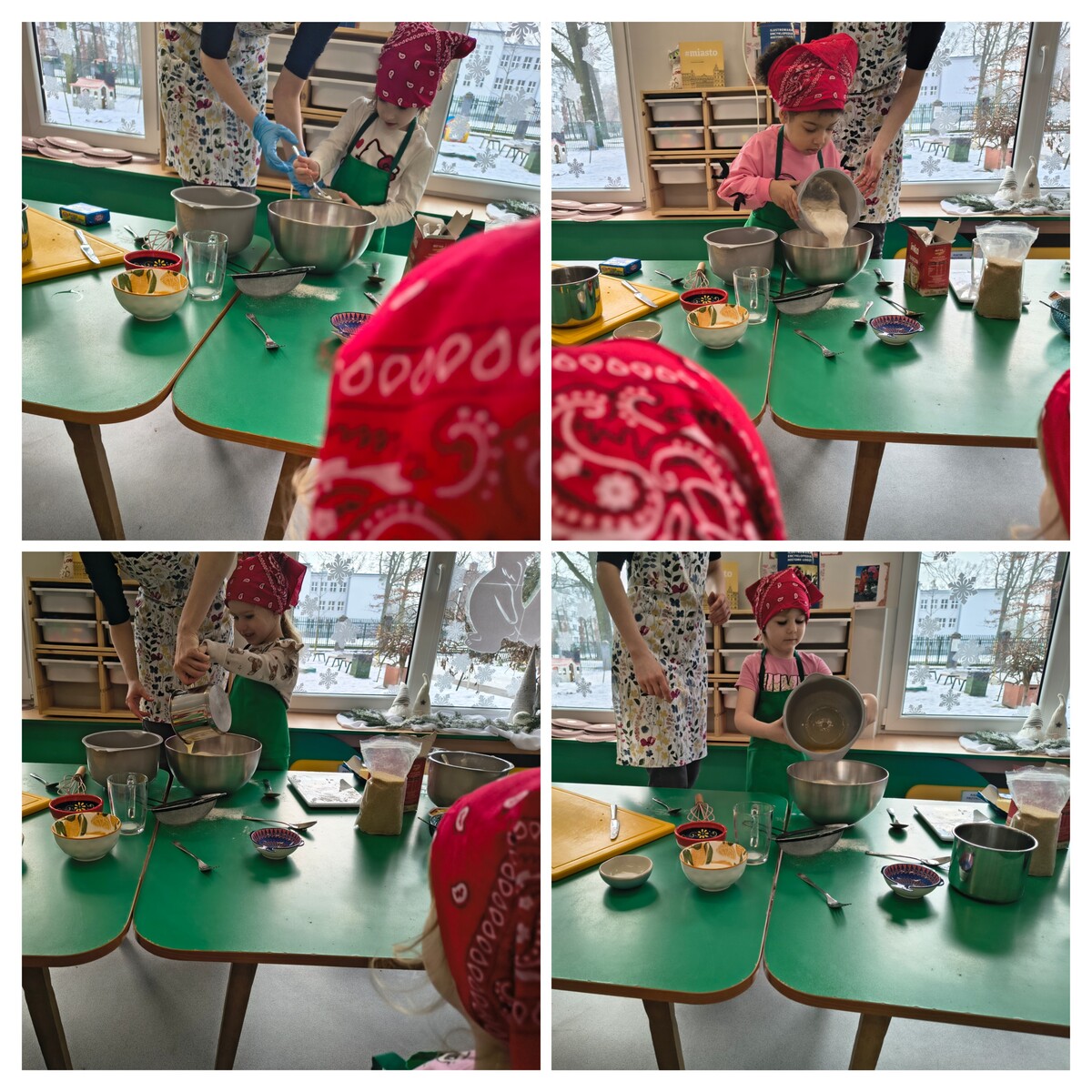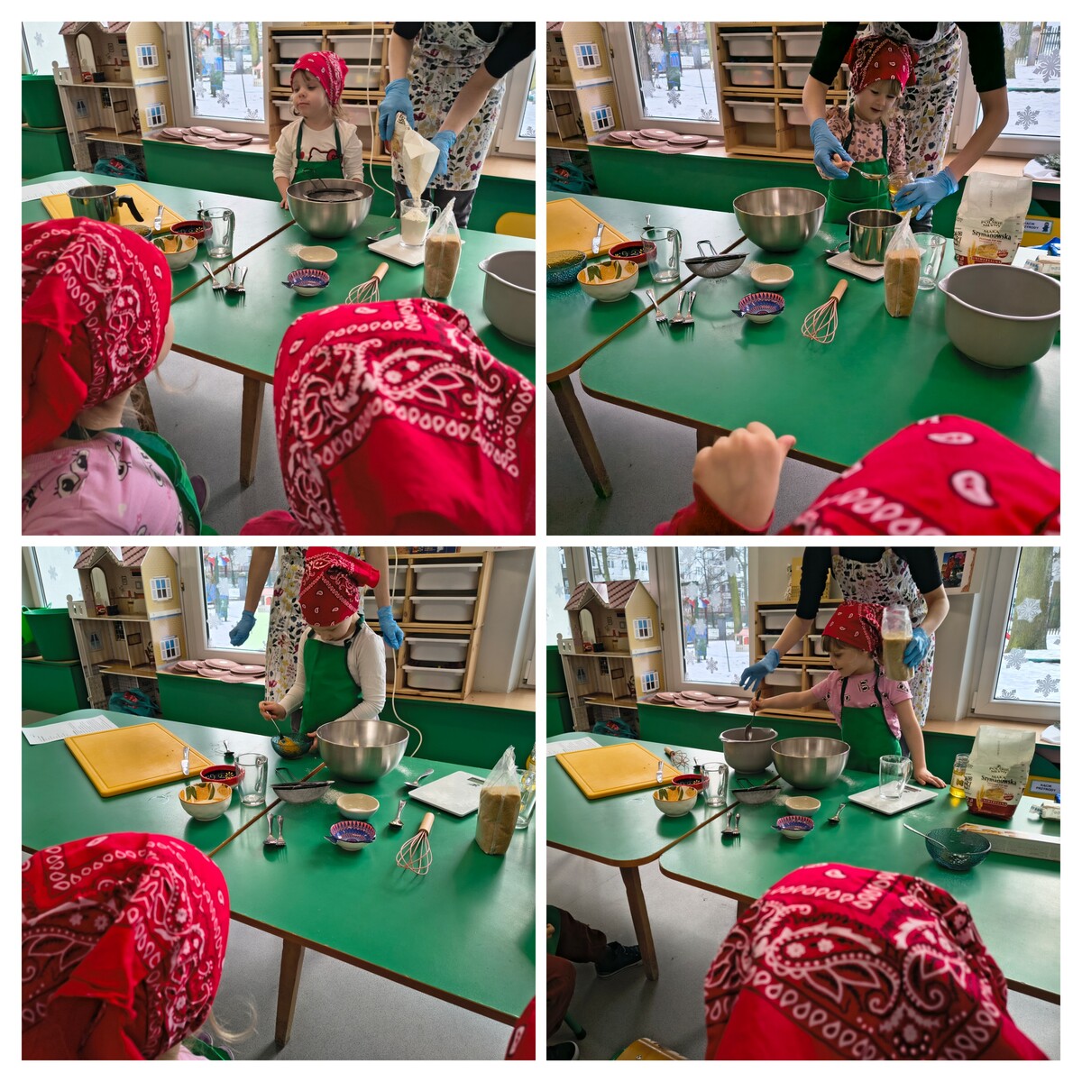 Dzieci dowiedziały się, skąd bierze się ciemny kolor i wyjątkowy aromat tego słodkiego pieczywa. Każdy przedszkolak miał okazję samodzielnie wyrabiać ciasto, co było świetnym ćwiczeniem dla małych rączek. Po całym przedszkolu rozniósł się zapach pieczonej kawy zbożowej i miodu, a warsztaty zakończyły się dumną degustacją własnych wypieków.