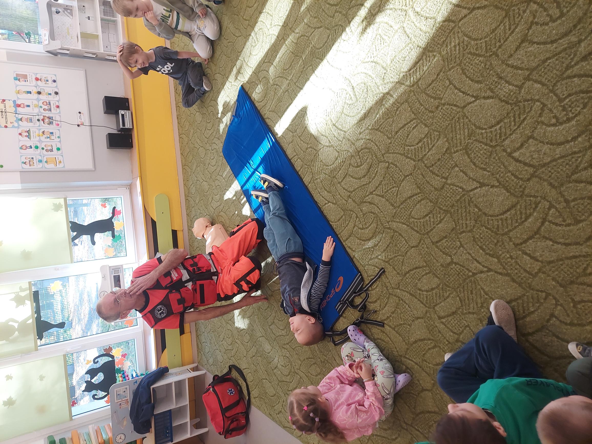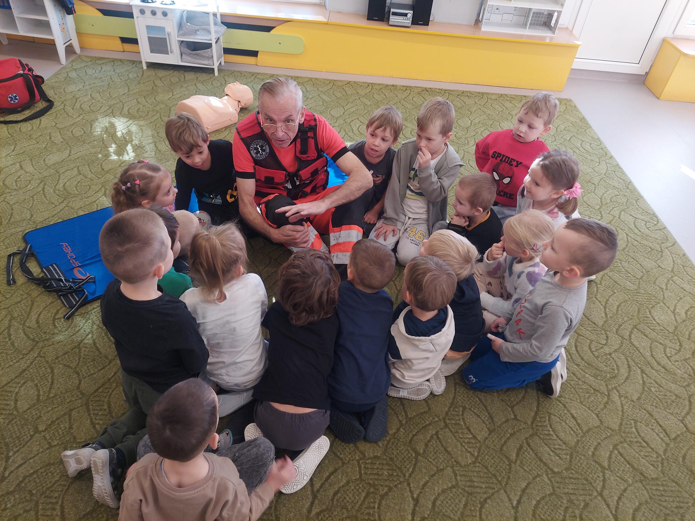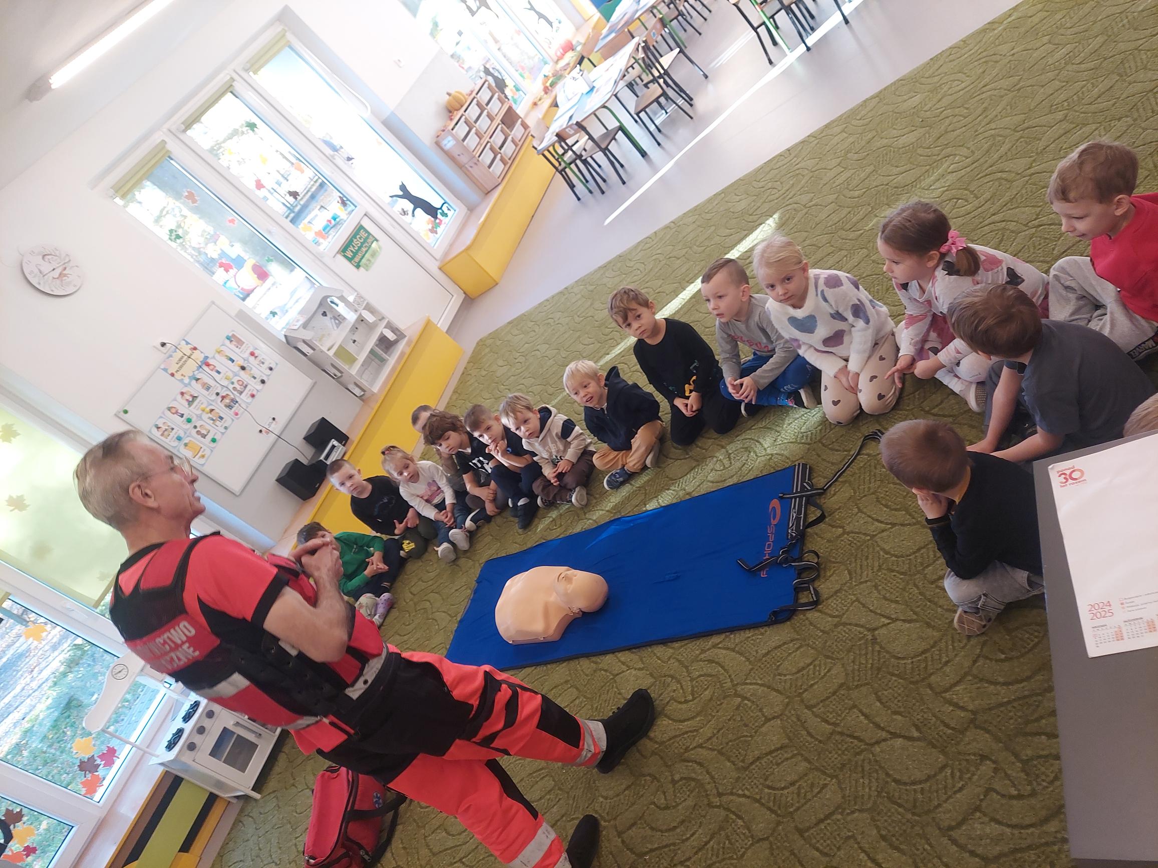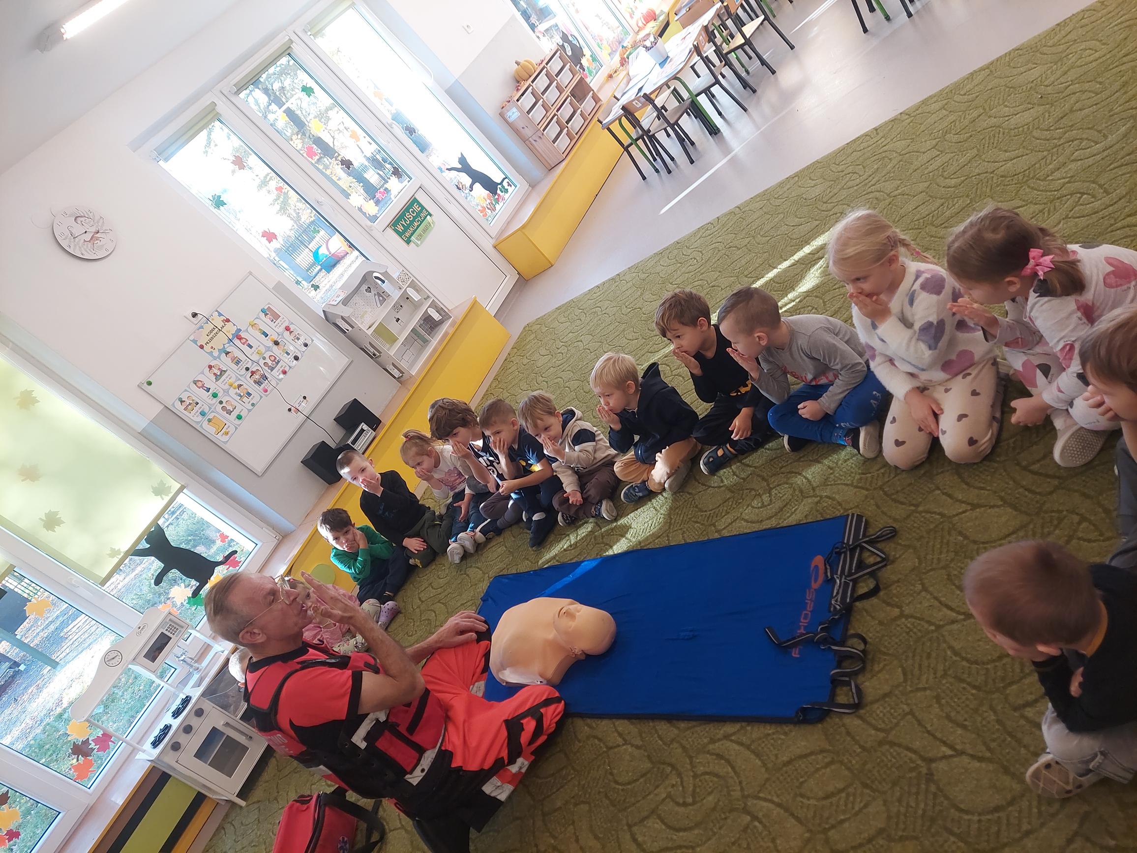 Dziś grupę II odwiedził wyjątkowy gość – ratownik medyczny! Podczas zajęć dzieci dowiedziały się, na czym polega praca ratownika oraz jak udzielać pierwszej pomocy w nagłych sytuacjach.
