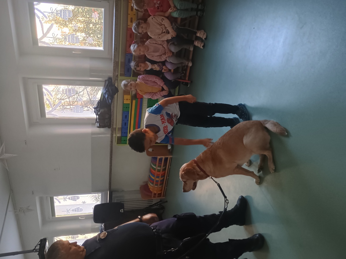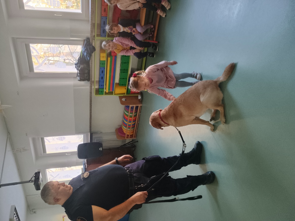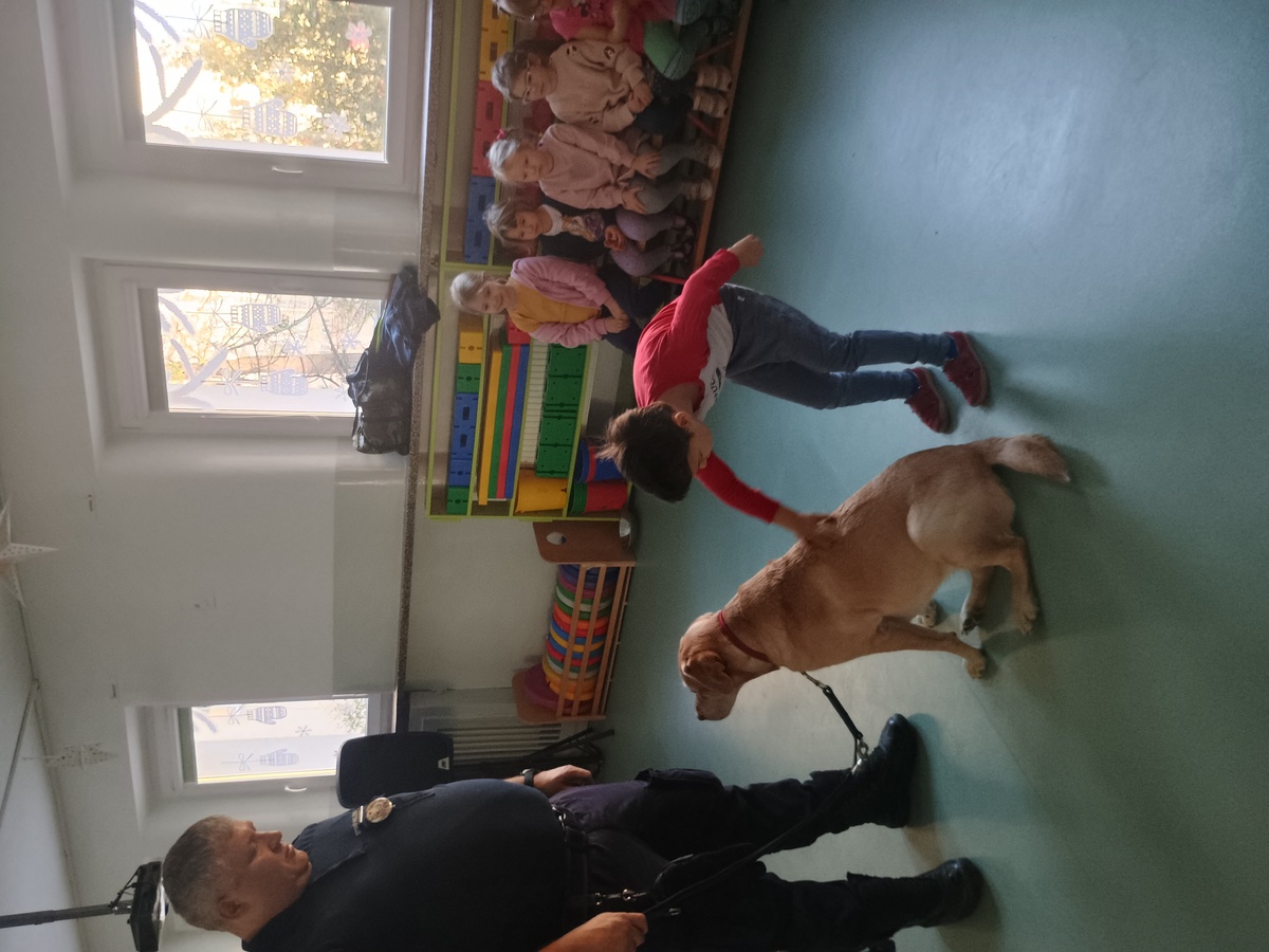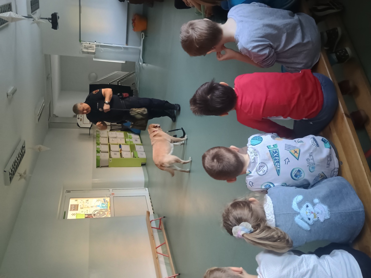 21 stycznia spotkaliśmy się z funkcjonariuszem Straży Miejskiej orz jego czworonożnym partnerem. Dowiedzieliśmy się jak bezpiecznie zachowywać się w kontaktach z psem oraz próbowaliśmy odczytywać sygnały, jakie nam wysyła. Z zaciekawieniem słuchaliśmy opowiadania o tym, w jaki sposób pies pomaga w pracy strażnika miejskiego. Na zakończenie warsztatów każdy z nas miał okazję zapoznać się z psem oraz go pogłaskać.